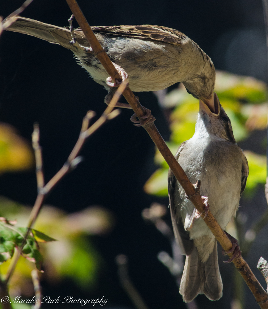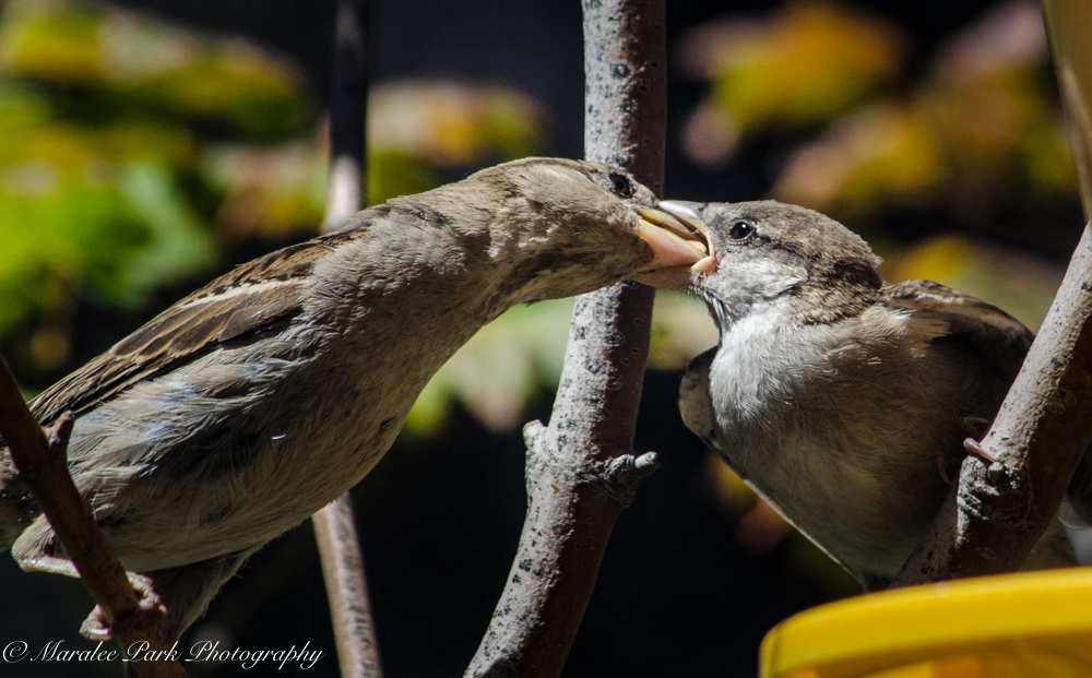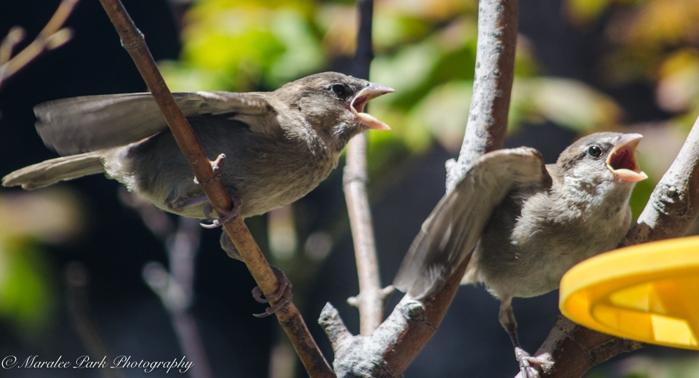 Even through the babies have left the nest, they still want mom to feed them.