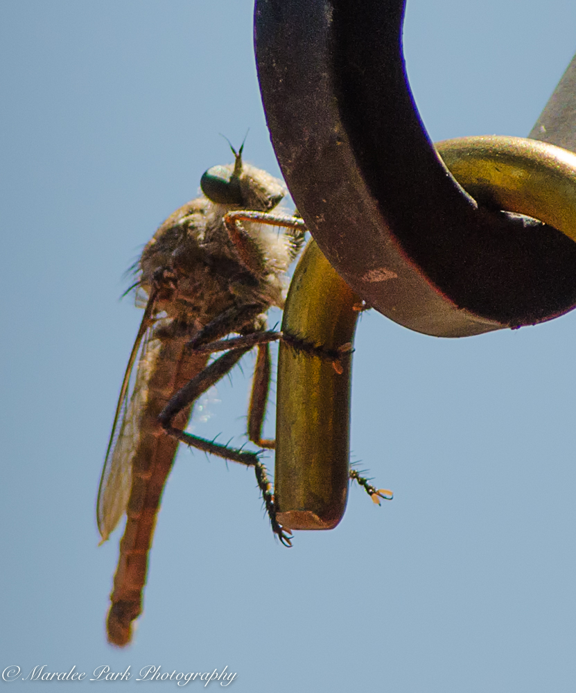 Pretty sure it’s a Robber Fly . . .https://dispersertracks.com/2014/07/15/robber-the-impressive-fly/