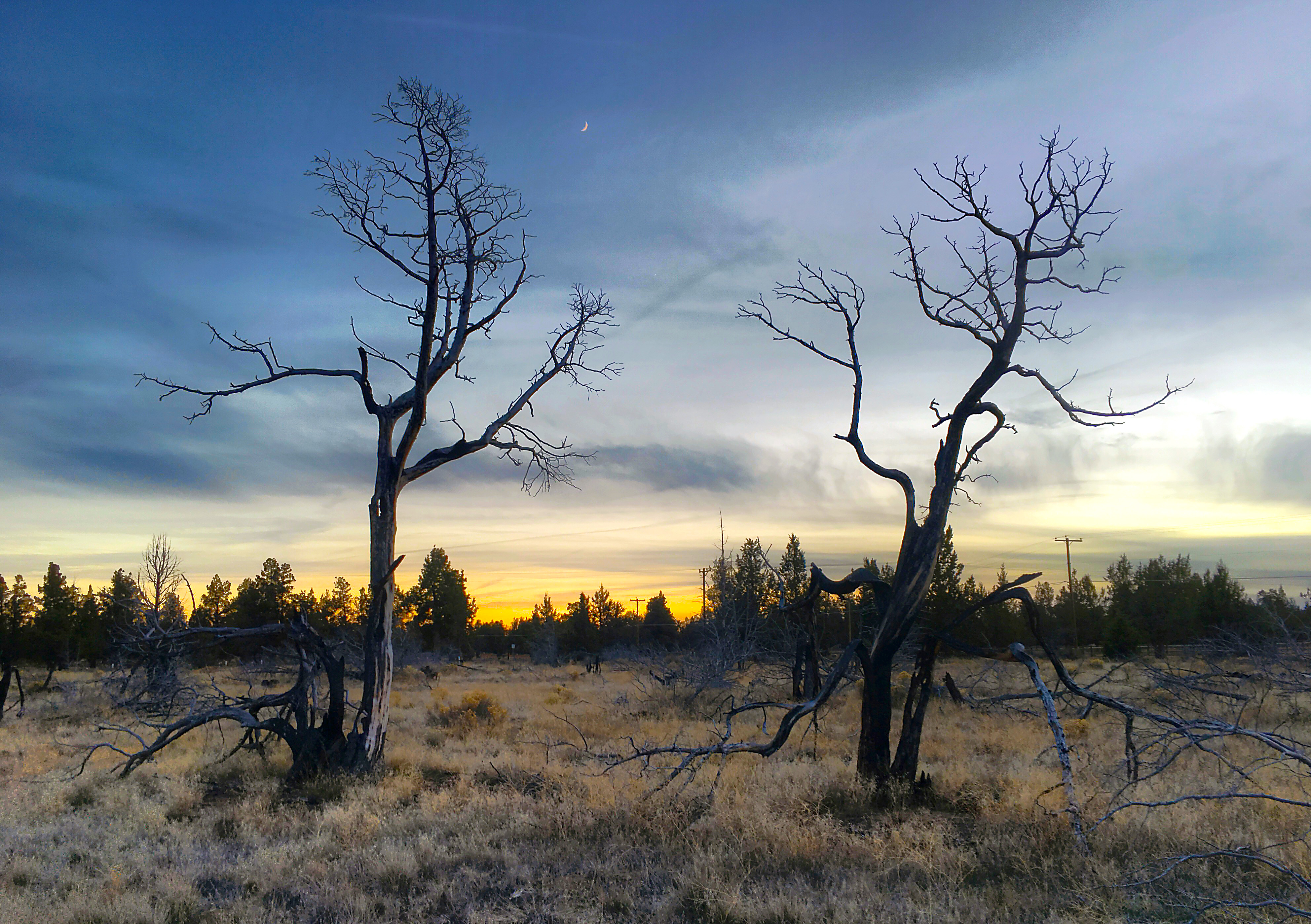 We came across these burned out trees in a field and I had to photograph them. It was just after sunset so there was just enough light to silhouette them against the sky. Taken with my iPhone.