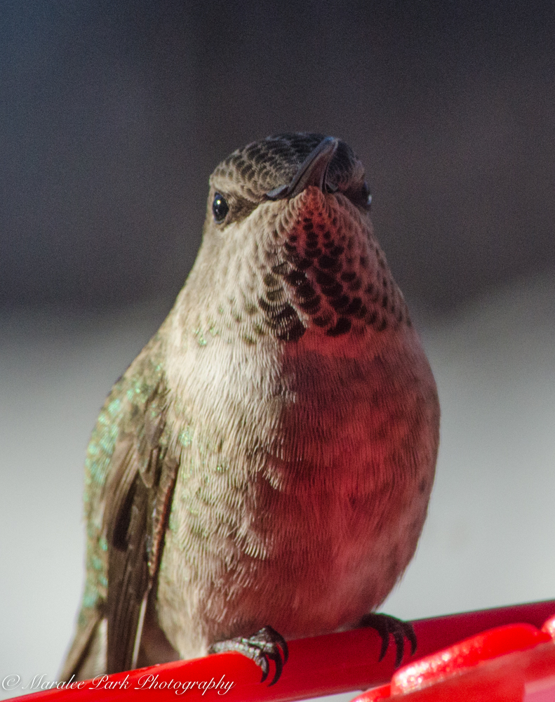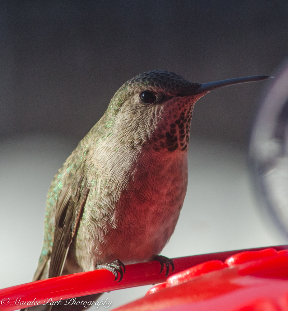 1. not sure,but I think this is a female Anna’s & they come north during the winter time.Check your feeder for black mould on the inside of the flowerettes.I use a old tooth brush.What was your focal length btw? Great shots!