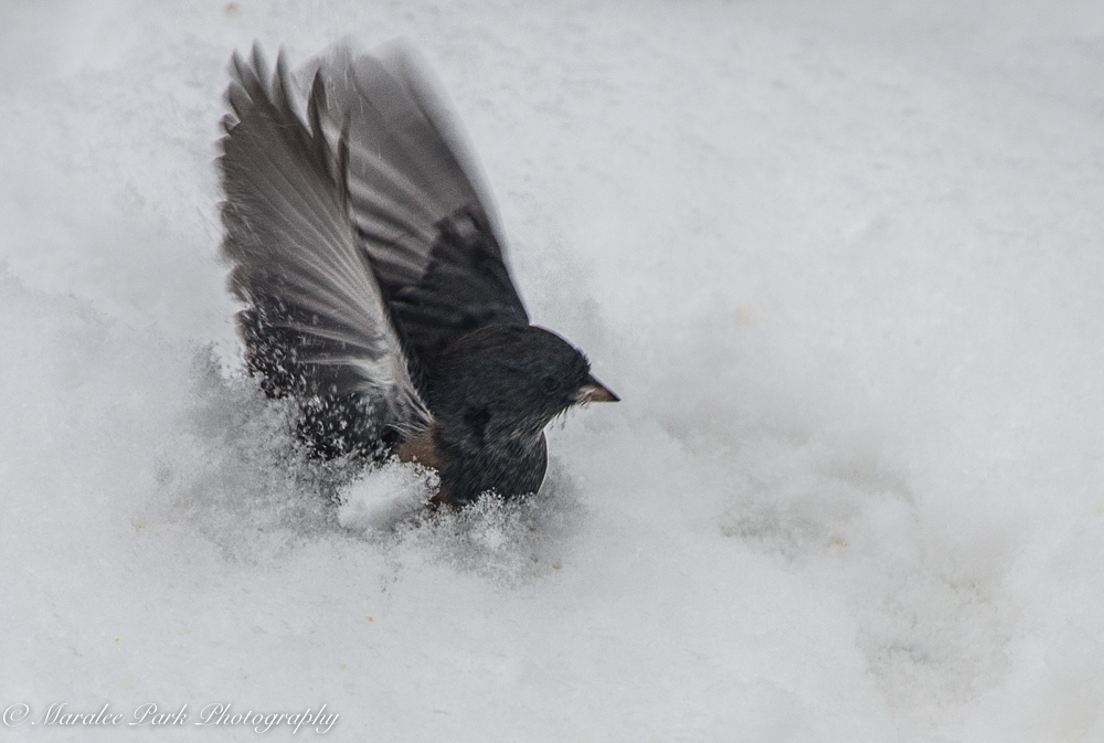 I have lived here 16 years and today is only the second time that state offices in our area have been closed due to snow. And the last time was about 3 weeks ago. We got another 6-12 inches overnight and I spent the first part of my morning shoveling our driveway. I still can’t go anywhere until the streets are plowed as there are snow drifts all over the road. Plus it’s only 7 degrees with a windchill of -8. But the juncos are loving it. The really enjoy jumping into the snow and playing.