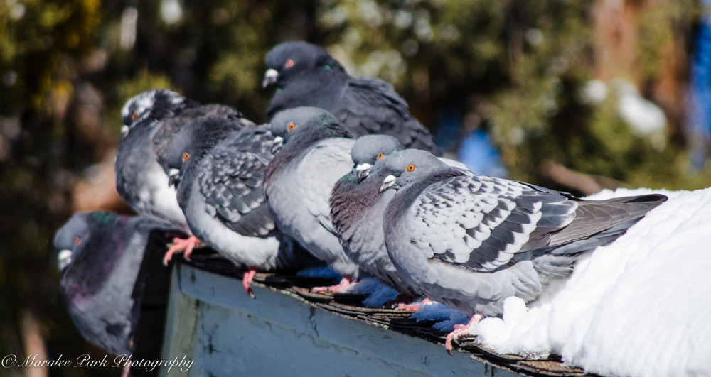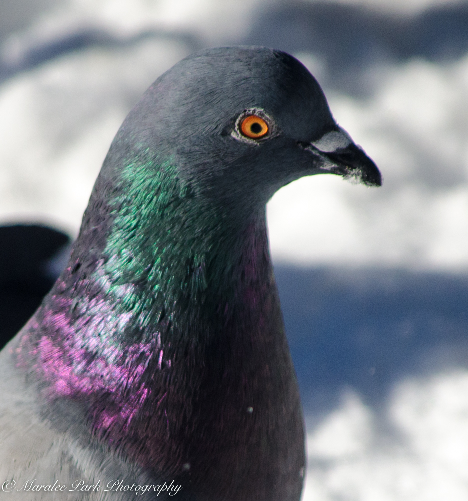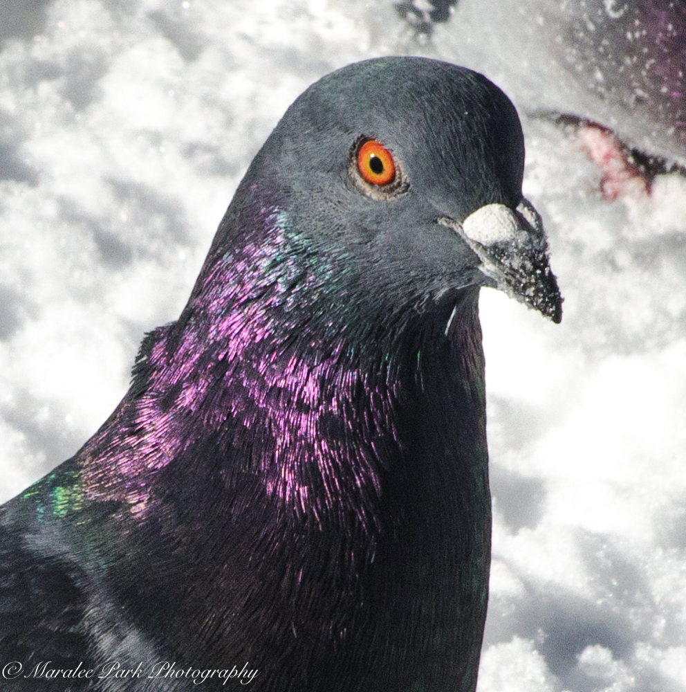 These were taken on the one nice day we had last week – one of the few days we haven’t gotten any snow. I’m not a big pigeon fan but they do have some beautiful coloring when the sun hits them just right. I love the iridescent purple and green.