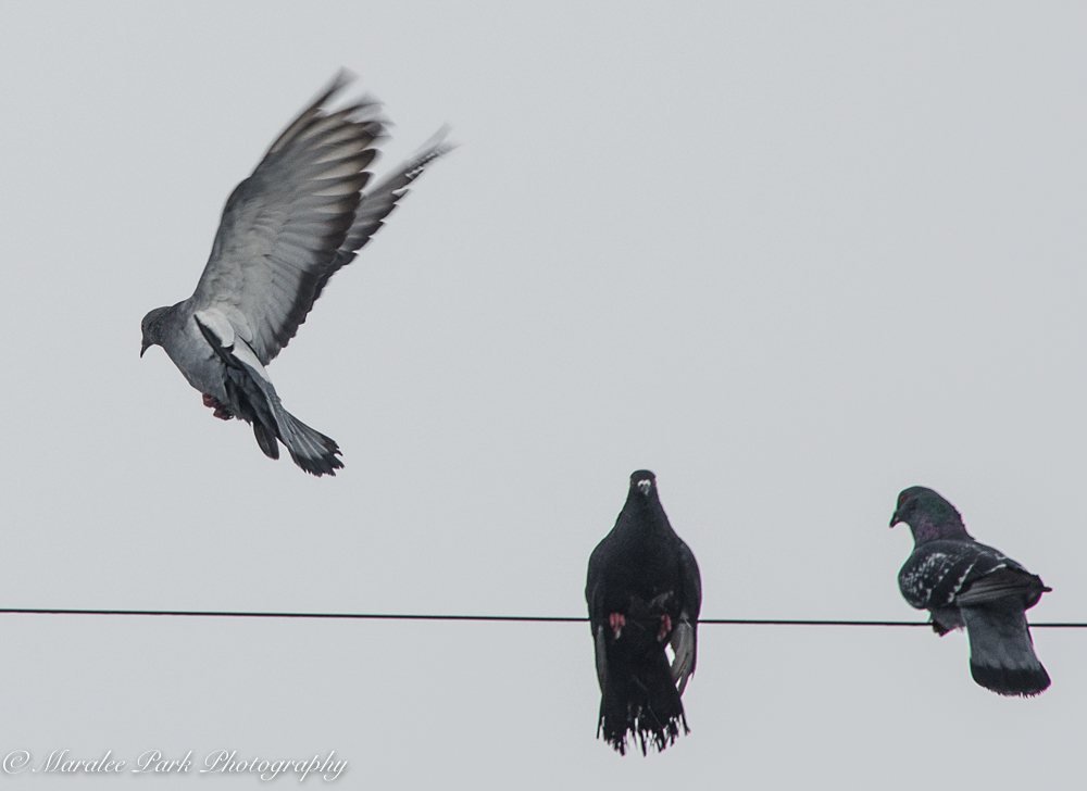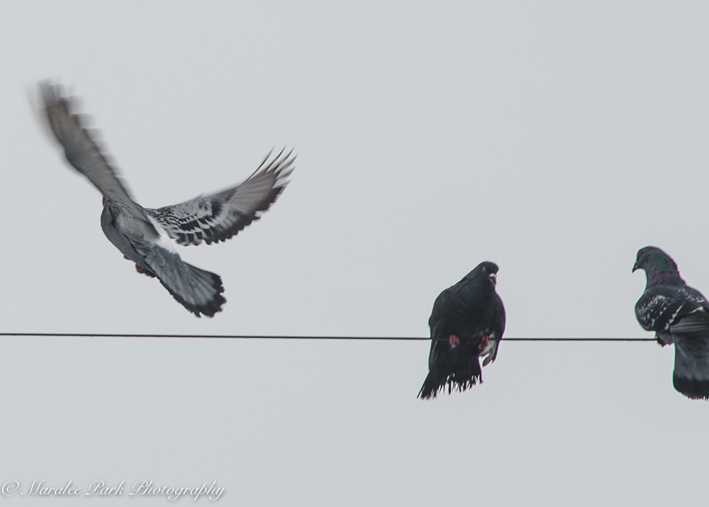 It appeared that these pigeons were having a conversation and one flew off in a huff. I don’t know what they were talking about.