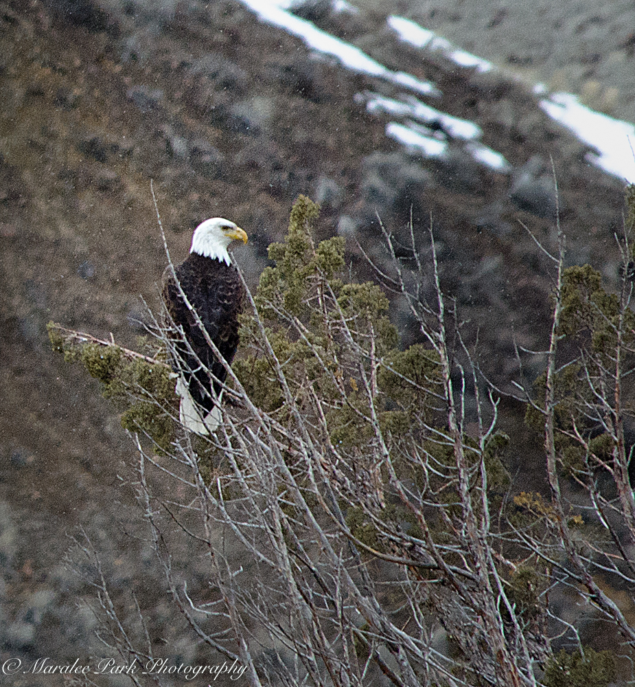 On our return trip we had time to stop, but the weather wasn’t very cooperative. We hit several snow squalls that lasted quite a while. We saw more eagles and hawks, but not much more.