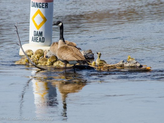 The baby geese are hatching and mom and dad are very protective of their babies. Baby geese can start swimming within 24 hours of hatching and are able to dive 30-40 feet underwater by the time they are 1 day old.