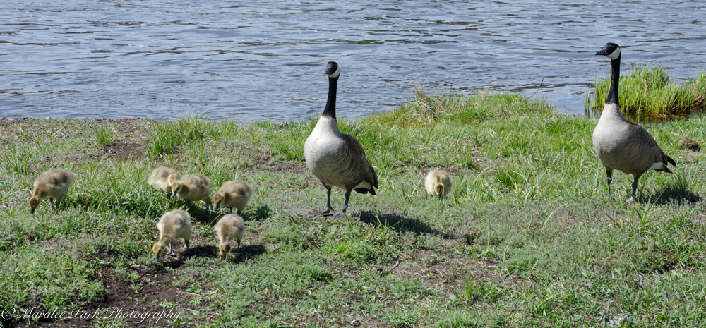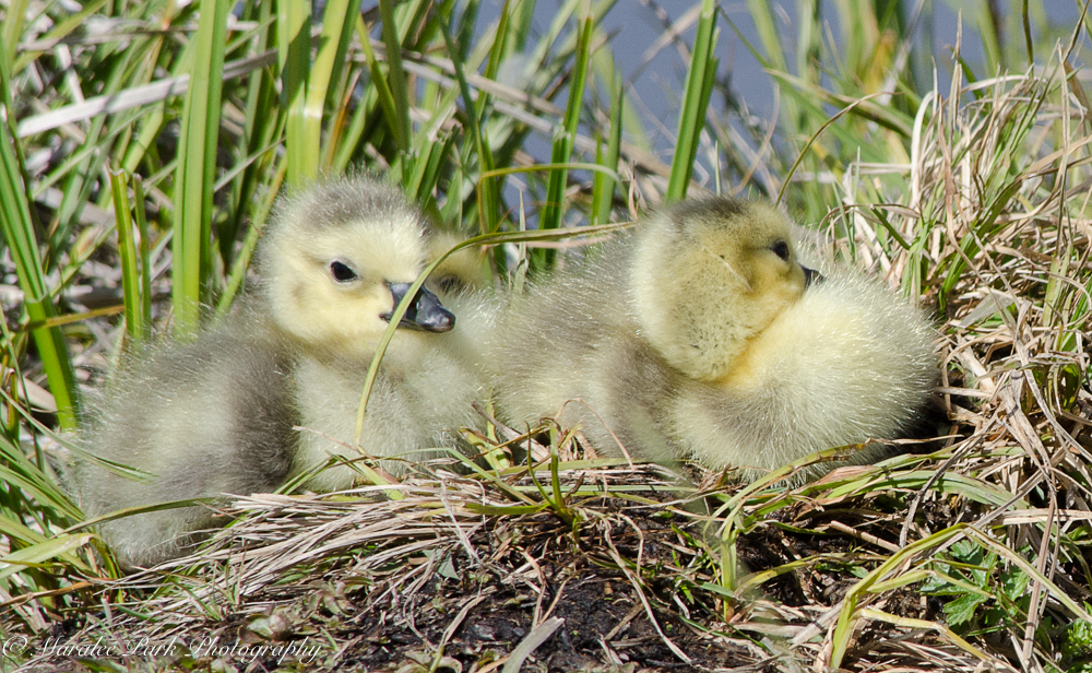 The baby geese are hatching and mom and dad are very protective of their babies. Baby geese can start swimming within 24 hours of hatching and are able to dive 30-40 feet underwater by the time they are 1 day old.