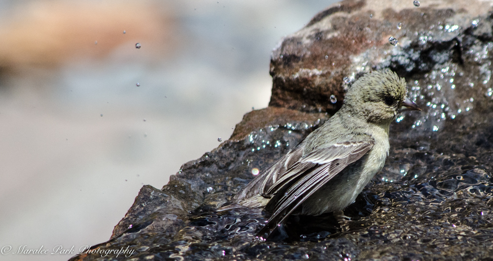 Posted on June 4, 2017 by Tuxedo Sophisticated CatMore Bath Time This female lesser goldfinch was having a wonderful time in the water yesterday. I love how they splash around in the water. She was oblivious to me taking photos of her. Maralee Ah, that feels good. Splashing Around Rate this:Share this: Click to share on X (Opens in new window) X Click to share on Facebook (Opens in new window) Facebook Click to email a link to a friend (Opens in new window) Email Click to share on LinkedIn (Opens in new window) LinkedIn Like Loading... Related