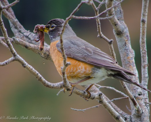 I had a lovely walk along the river yesterday and the birds were very active. This robin paused to enjoy lunch. It looks like it found a nice, juicy worm.