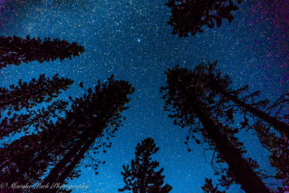 Our Saturday excursion to Sparks Lake for star trails photography started earlier in the evening for the sunset. The sunset wasn’t particularly dramatic without any clouds in the sky. The red-orange color in the background is smoke from a wildfire off in the distance. But there were people out in their canoes and kayaks enjoying the gorgeous weather and I took a few shots while waiting for it to get dark enough to start the star trails. Once I started the intervalometer and my camera was taking photos automatically, I used my Sony camera to take some photos of the stars and the trees. I had an hour to kill while waiting for my star trails to finish so I figured I could do something useful.