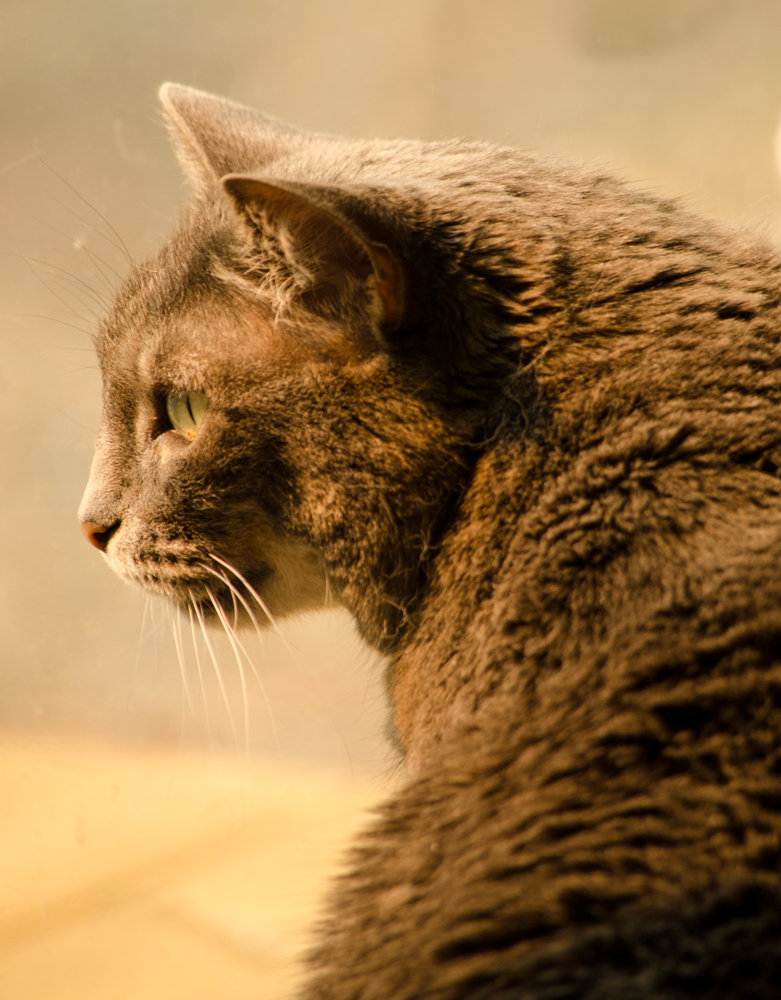 I took this photo on Thursday when Miranda was looking at the birds outside. The lighting in this area is usually very harsh but because it was being filtered through all the smoke in the air, it was a very soft, golden light. Miranda loves watching all the birds.