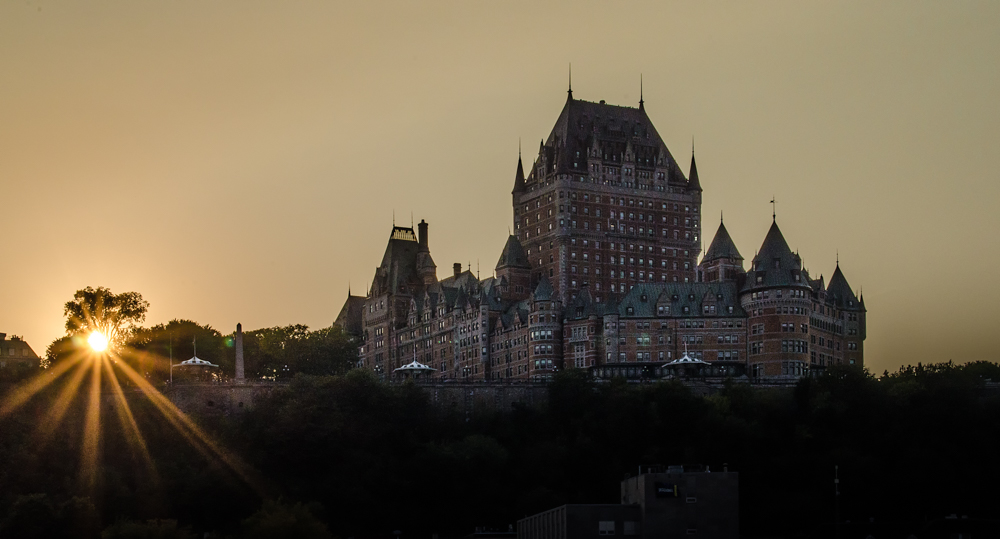 For our last evening we took the short ferry ride to Levis, directly across from Quebec City. We had been told by several people it was the best place to take skyline photos of Quebec City. We planned our ferry ride so we would arrive before the sunset and planned to stay until the city lights came on. There was a haze in the air and there weren’t any “beauty” clouds but it was still a beautiful sunset. Between the sunset and city lights, we had time to grab a bite to eat at a little barbecue restaurant across from the ferry.