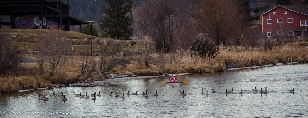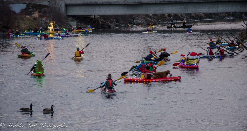 Last evening was the “almost” annual Christmas Kayak Parade on the Deschutes River. I say almost because there have been years when it had to be cancelled due to snow storm (last year) or it was so cold the river froze over (a few years ago). But last night the conditions were perfect. It was a balmy 40 degrees and a bit overcast. Both kayakers and spectators turned out in droves. I’m just going to post the pictures for your enjoyment.