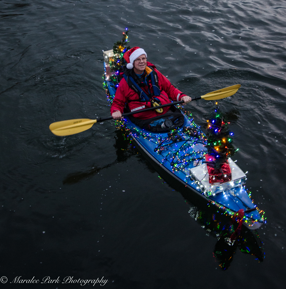 What an awesome, fun time! There are some really creative decorations for such a small thing to decorate. I’ve watched many Christmas boat parades on the Chesapeake Bay, but never have I seen one with kayaks. Marvelous!