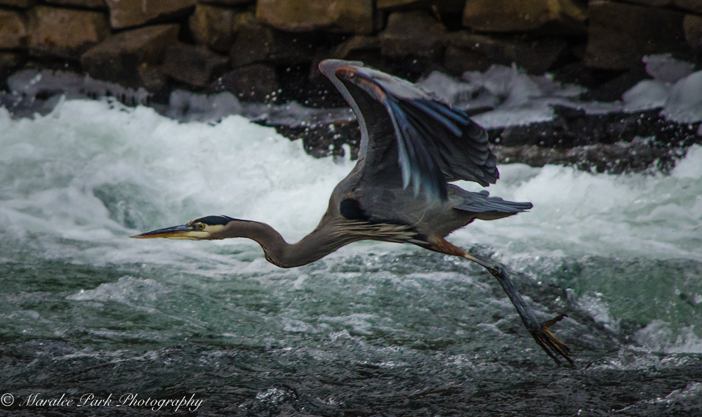 Great Blue Heron in flight Great Blue Heron in flightI was stalking the heron for about an hour yesterday and watched it fly from rock to rock. I was able to get a few shots of it flying. Even though it is a big bird and its flying is not as fast as smaller birds, I still have a very difficult time getting good shots of it in flight.