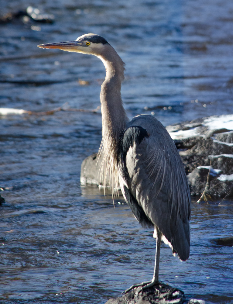 I have been seeing the heron almost every day on the river for the past two weeks. The amount of water in the river has gone down considerable and there are a lot more rocks for the heron to stand on and wait for a fish to go by. These were taken yesterday when the sun was very bright so the lighting was not optimal. It still hasn’t caught any fish while I’ve been watching but I am a patient and persistent person. One of these days . . .