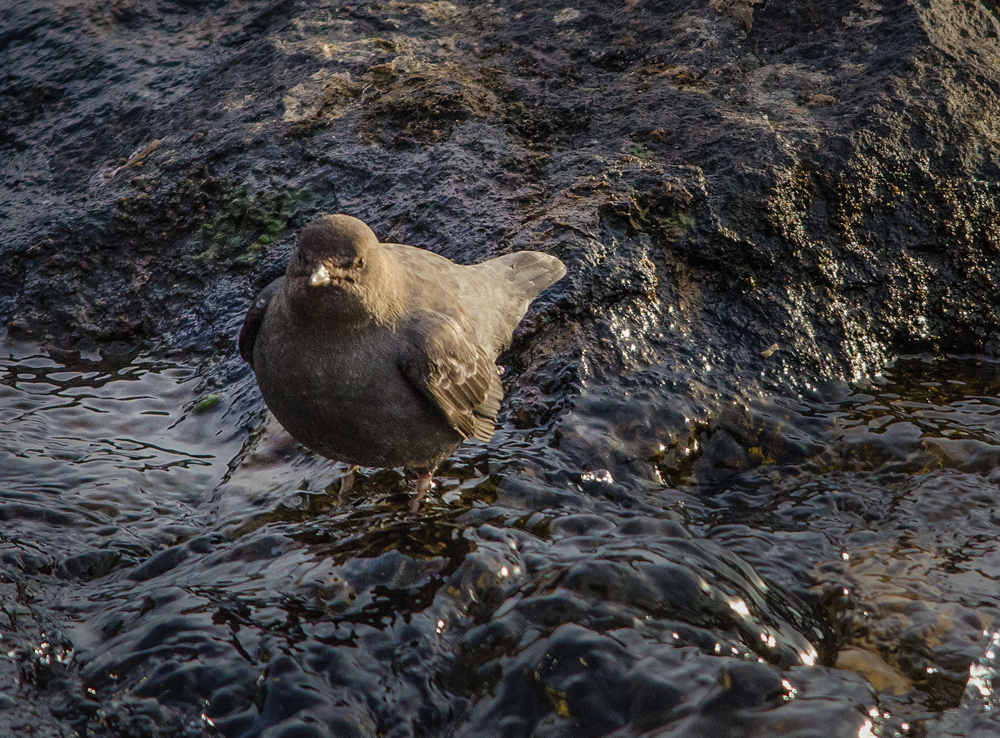 The American Dipper, or water ouzel, is an unusual bird. It’s not a large bird – it’s about the size of an American robin. You will find it in the western streams standing on rocks in fast-moving water where it will hop into the water to catch its food. This one hopped into the water several times and then reappeared a few rocks away.