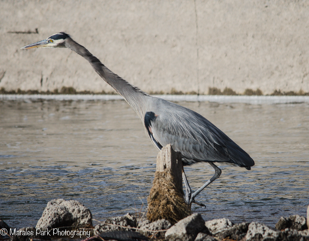 A few snowflakes didn’t stop MyFavoriteHeron from standing in the middle of the river. It was moving from spot to spot and I was hoping it would catch a fish but no such luck. It didn’t stay long before flying off to a better fishing spot.