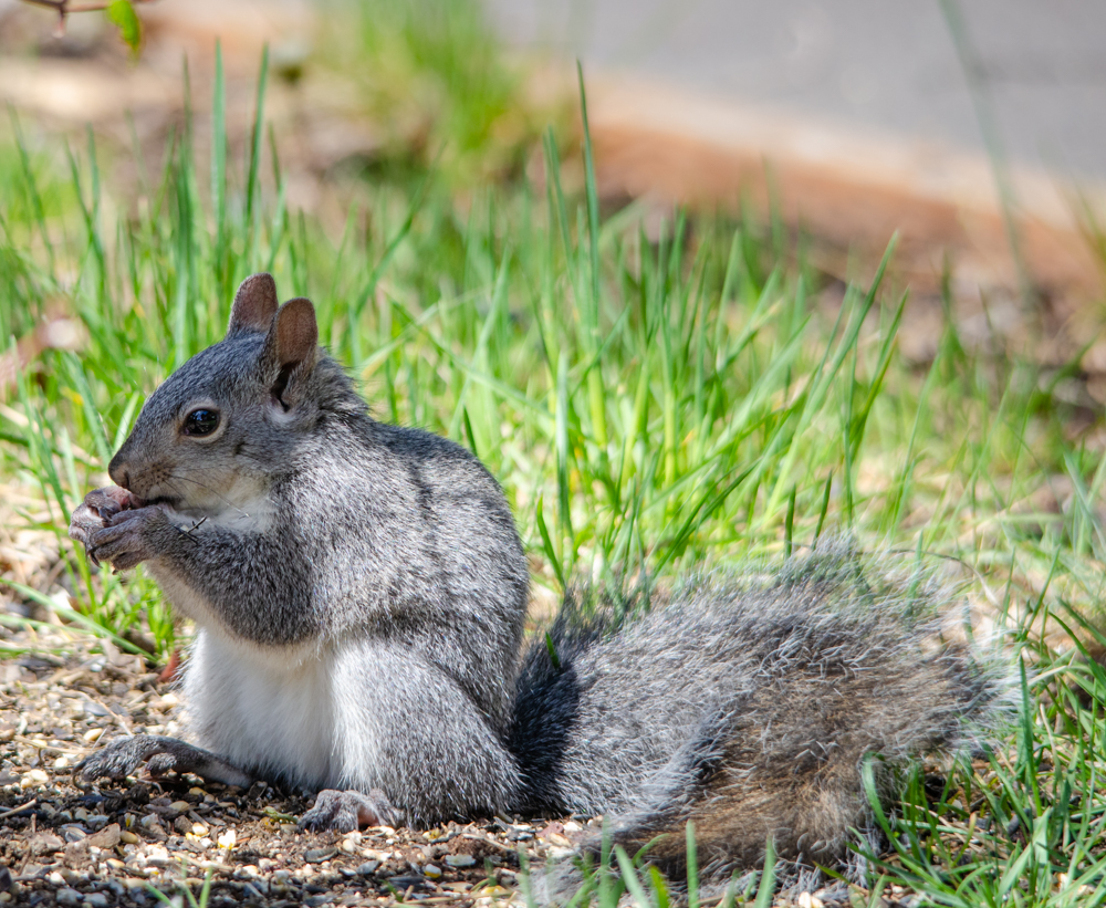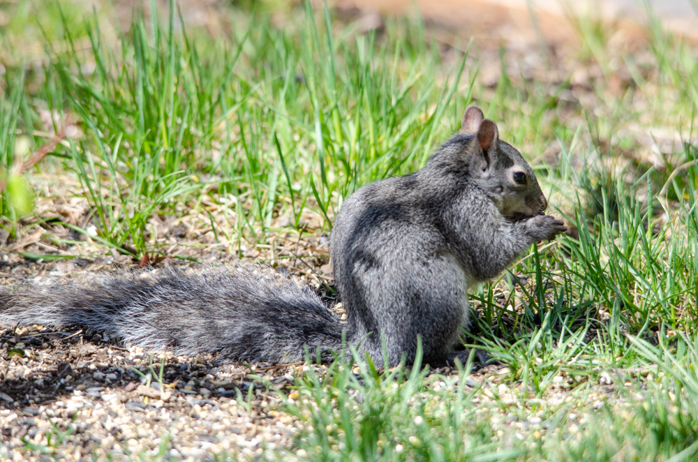 I think one of the squirrels living near my office had baby squirrels because we had 4 small squirrel running around and playing and eating in the front of our office. These are a couple of them.