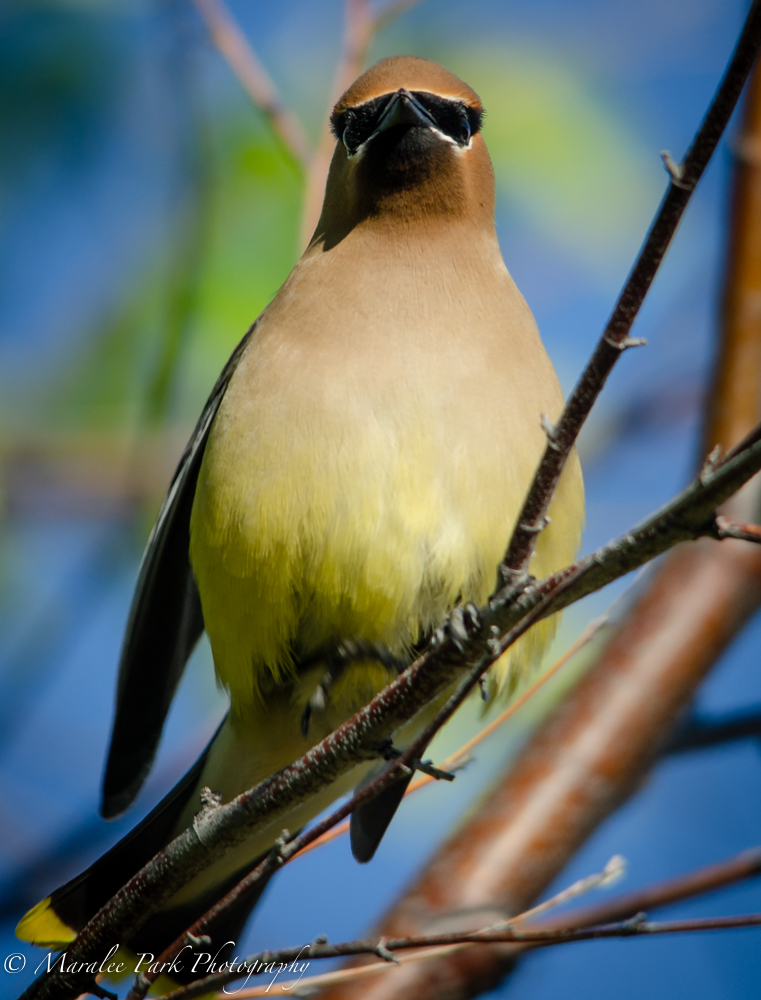 We had a beautiful first day of summer yesterday. I took a short walk by the river and happened to see this cedar waxwing fly into a nearby tree. With all the foliage on the trees now it is hard to see the birds. I did not do any color enhancement with these photos – it was just such a beautiful, vibrant day.
