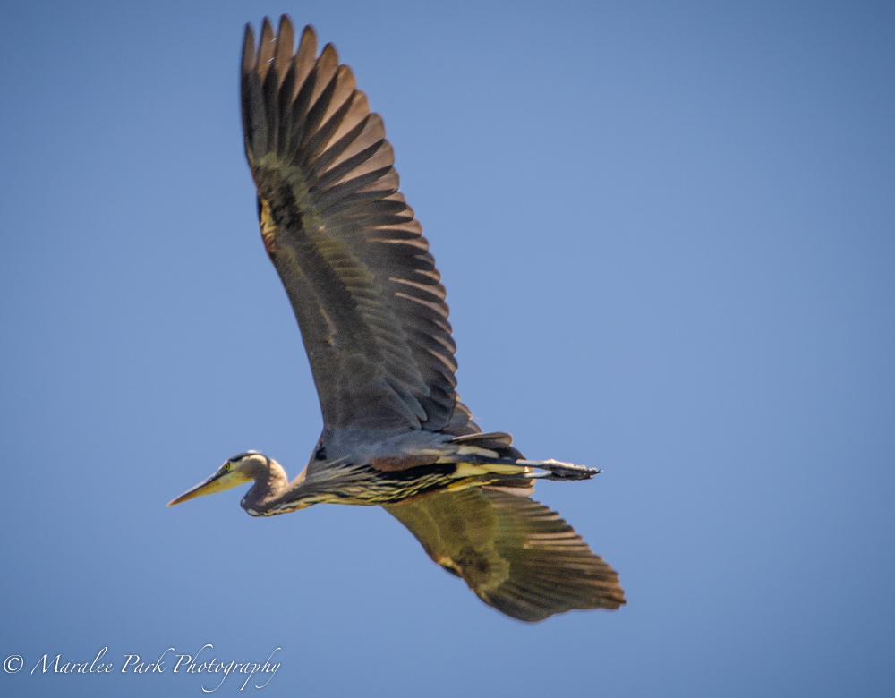 I hadn’t seen my favorite heron for several months so I figured it had moved to its summer-home. I normally only see it between October and March. But today, while walking along the river, it surprised me and flew overhead for a minute or so before landing in a tree. These aren’t the best shots because it was flying fairly quickly, but it was fun watching it soar overhead.