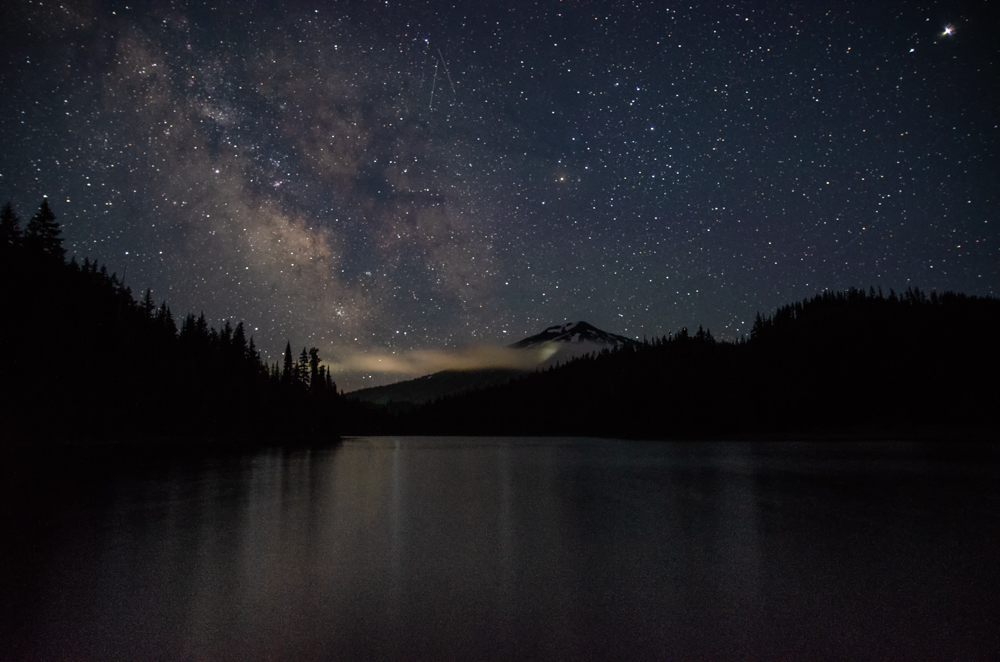 Last night I joined the local photography meet-up group for a Milky Way shoot at Todd Lake. When we left Bend, the skies were clear but as we traveled toward the mountains we could see a heavy cloud bank covering the area of the mountain we would be shooting. Even so, we were hopeful that once the sun went down, the skies would clear.
