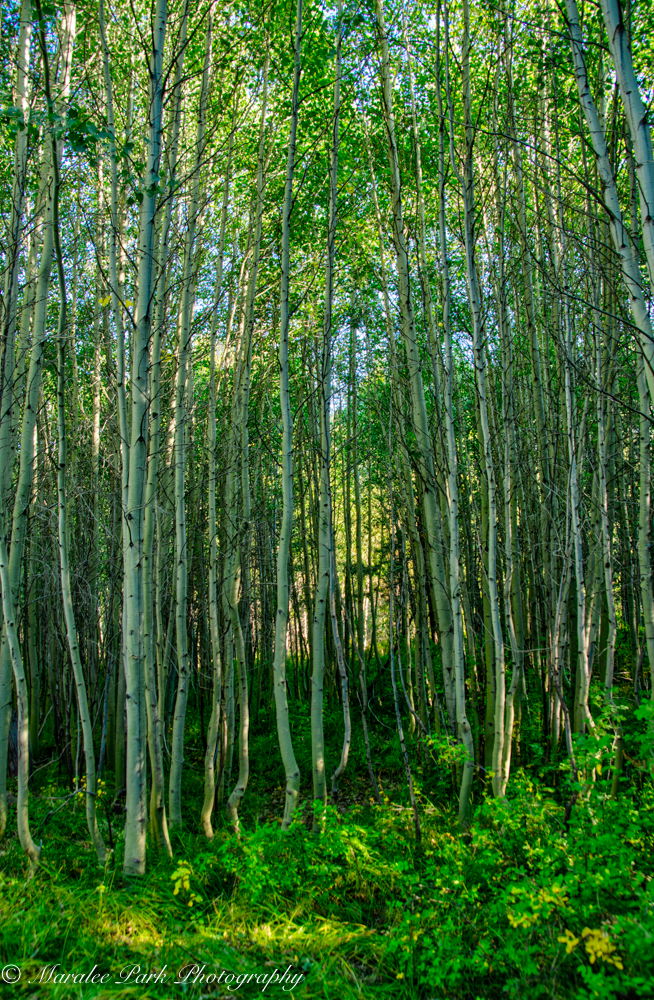 A few miles out-of-town there is an aspen grove surrounded by pine trees. There is a small fenced-off road that goes a short distance through the grove. We took a drive there yesterday to see if any of the leaves had started changing color – they hadn’t. In a few weeks, this place will be magical with the trees covered in yellow.