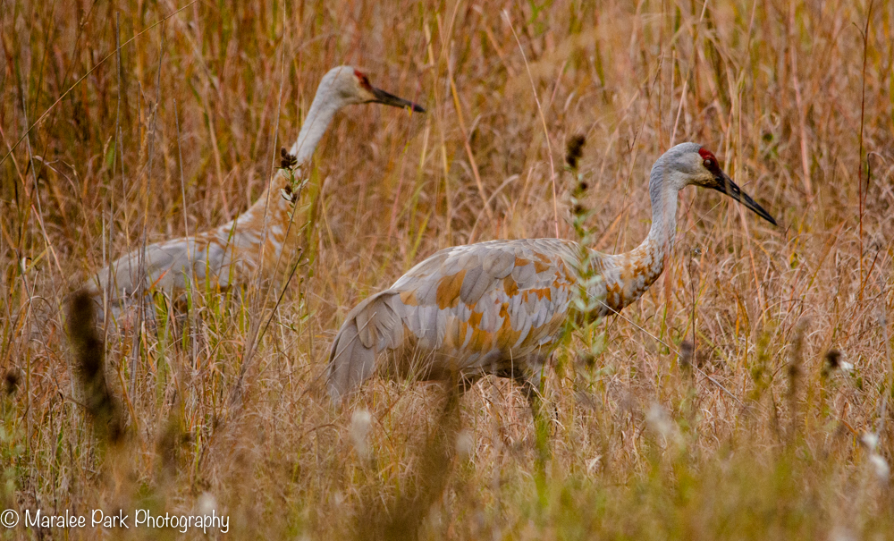 The main reason I wanted to visit the Sherburne National Wildlife Preserve in Minnesota was to see the sandhill cranes. I have never seen one before. They proved to be quite elusive the day we were there. They blend in with the tall grasses and are difficult to spot. I only saw a few and they were cranes that were standing on the road and then flew off.