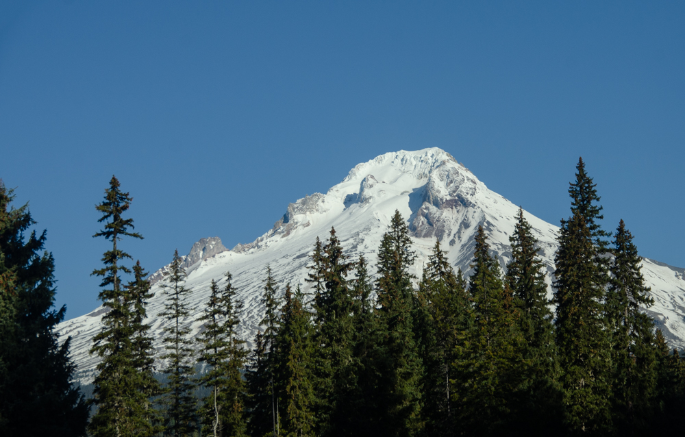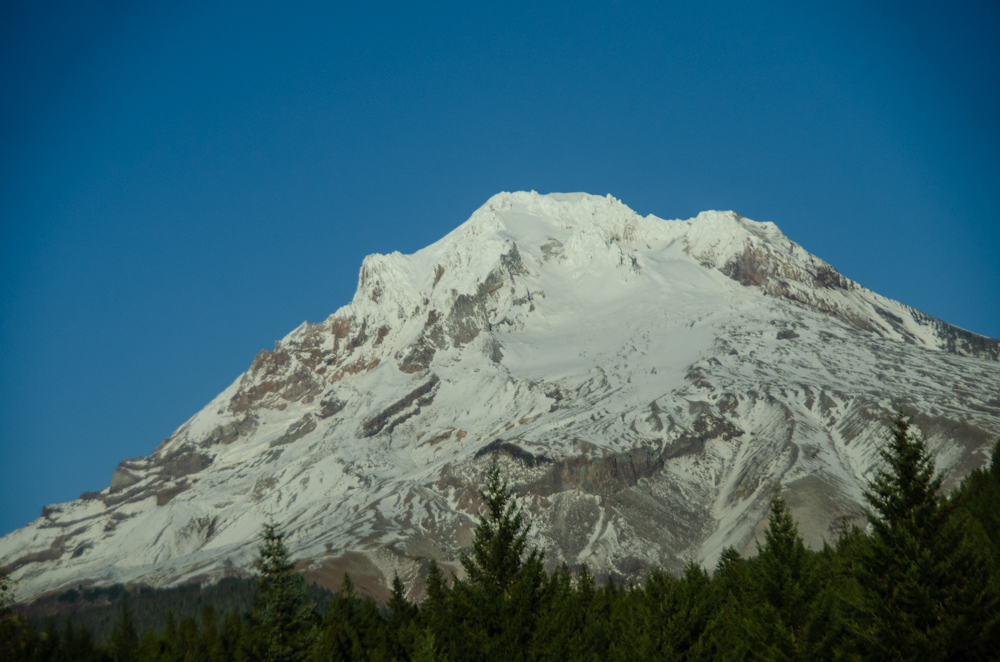 Once we passed Mt. Jefferson, Mt. Hood loomed right in front of us. On a cloudless day, it is a spectacular sight to see this mountain right in front of you. Again, all photos were taken from a moving vehicles so they may not be tack sharp.