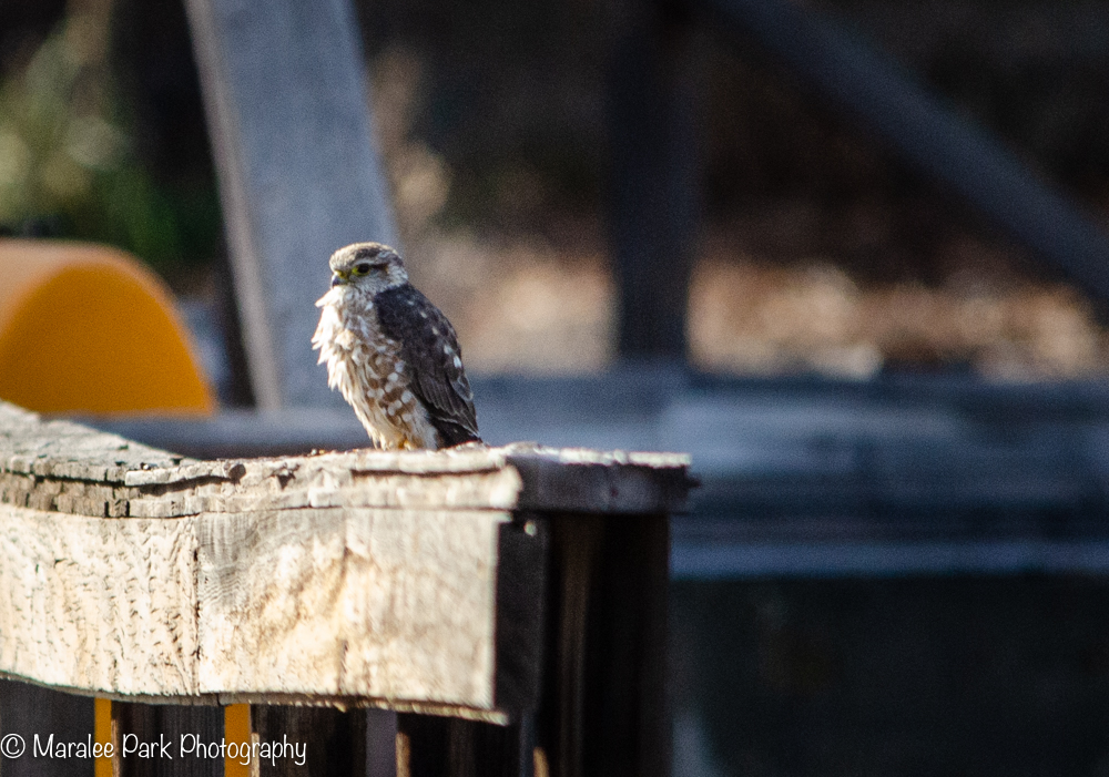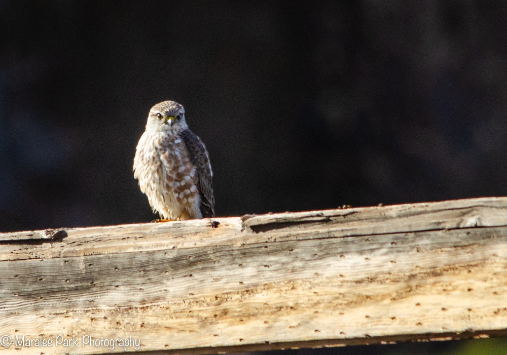 I have never seen this bird before but I believe it is a juvenile sharp-shinned hawk. Or maybe it’s an American Kestrel. Or a Merlin. Whatever it is, it flew onto a dam while I was walking along the river. It was quite a ways away and even with a 500mm lens, it was difficult to get a very good shot of it.