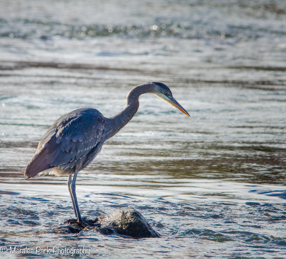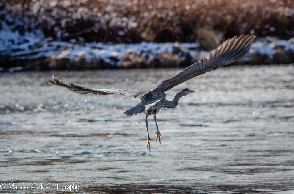 I watched him for a while and then he walked a few feet downriver to a spot where I could see him better. He stayed there for a while before taking flight and landing on a rock in the river.