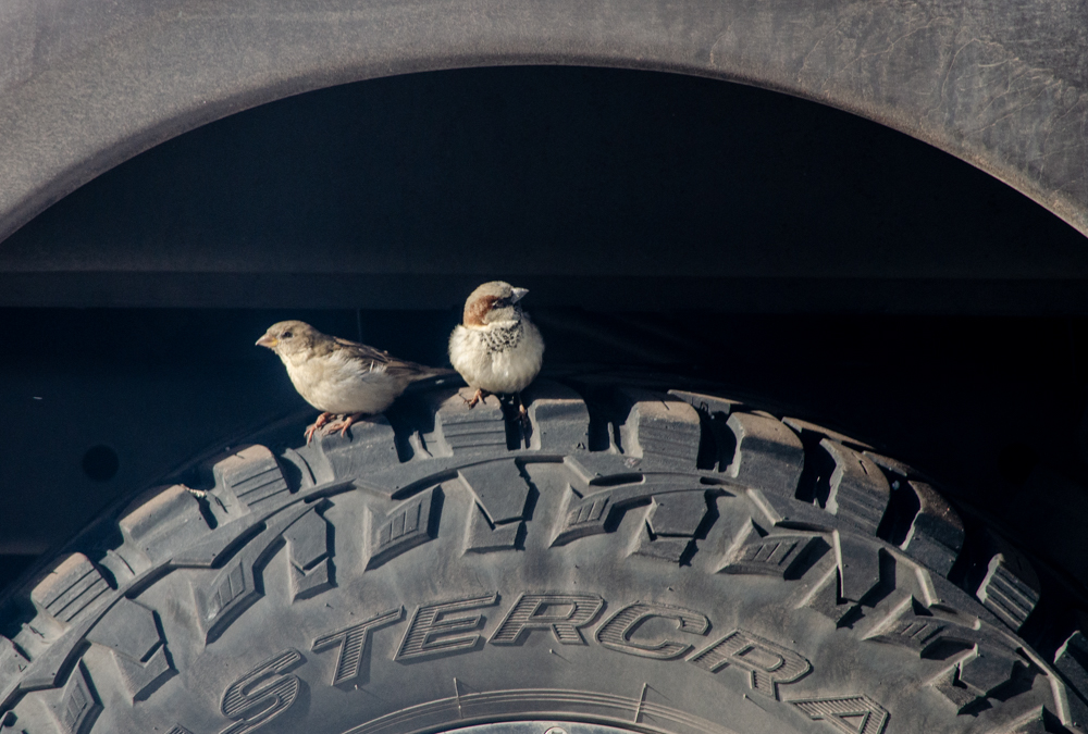 Posted on February 12, 2019 by Tuxedo Sophisticated CatHiding Out The little sparrows love to sit on the wheel of this big truck. Maybe they feel safe there. Maralee Rate this:Share this: Click to share on X (Opens in new window) X Click to share on Facebook (Opens in new window) Facebook Click to email a link to a friend (Opens in new window) Email Click to share on LinkedIn (Opens in new window) LinkedIn Like Loading... Related