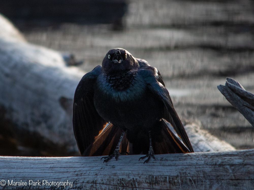 Posted on April 26, 2019 by Tuxedo Sophisticated CatBrewer’s Blackbird I know, for sure, that this is a Brewers Blackbird. It was showing off to a female bird that was on a nearby log. Maralee Rate this:Share this: Share on X (Opens in new window) X Share on Facebook (Opens in new window) Facebook Email a link to a friend (Opens in new window) Email Share on LinkedIn (Opens in new window) LinkedIn Like Loading... Related