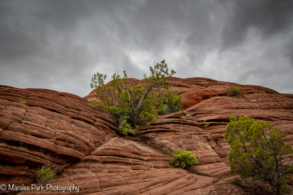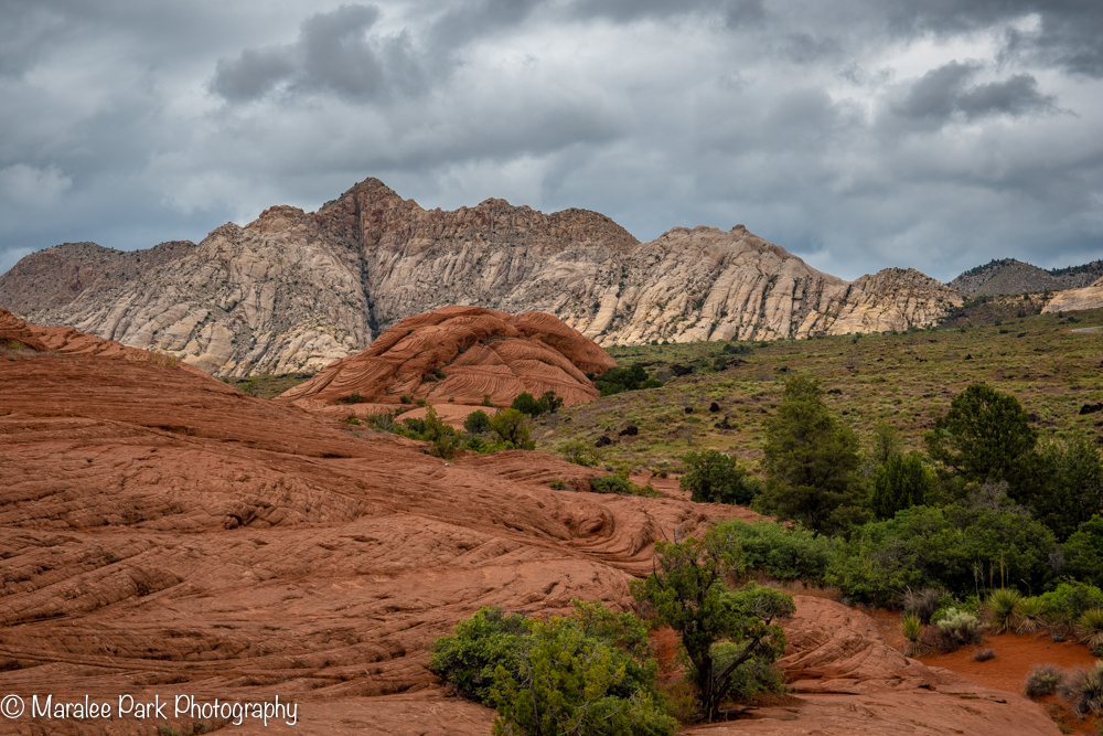 The day after the thunderstorm, we woke to cloudy, but dry, weather. Our plan was to do some hiking in Snow Canyon State Park which was only about a 10 minute drive from where we were staying.