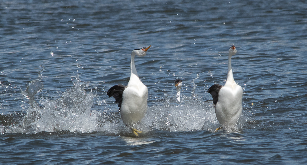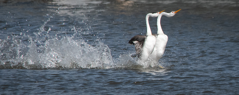Our first stop was in Klamath Falls where we hoped to get photos of the dancing grebes. I’m not sure if these are Western Grebes or Clarks Grebes – could be both. In either case, we had hoped to photograph the grebes “dancing.” It is actually called rushing and it is a maneuver the birds do during mating season. During the rush they will sprint across the top of the water in groups of 2 or more.