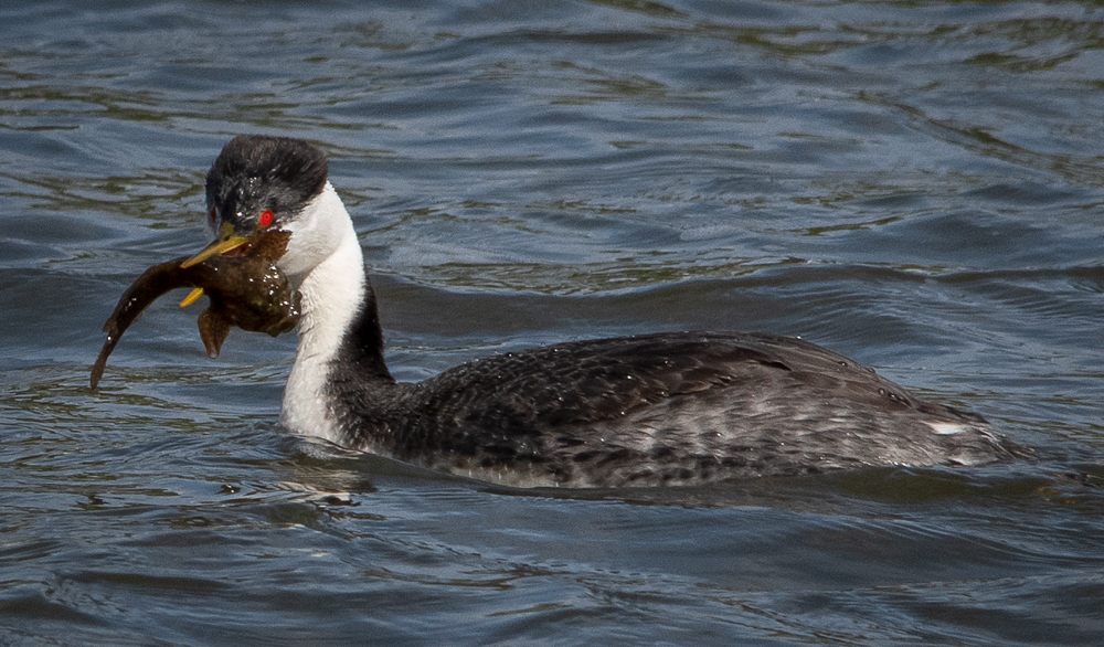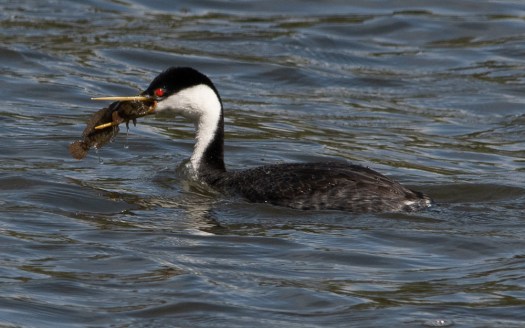 I have quite a few photos of the grebes swimming around in the water and there was one quite close to us who caught a fish.