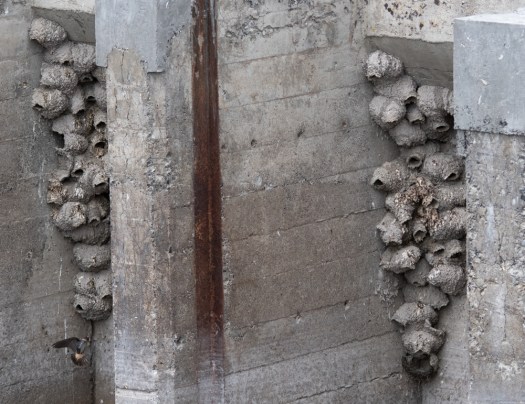 But just a short distance away were the city swallows who had built intricate condominiums. And the birds were constantly coming and going.