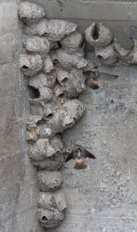 At one point when we stopped to take photos of some birds, we were near a concrete bridge where we found these cliff swallow nests.