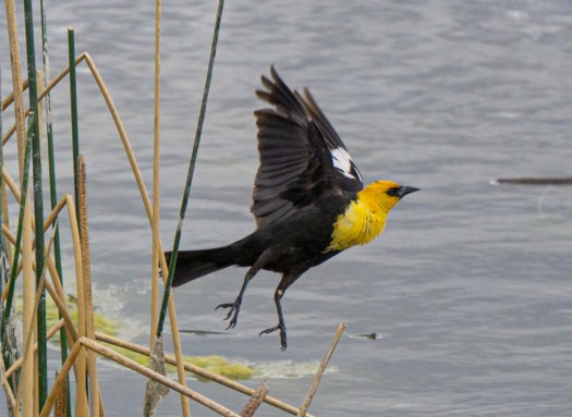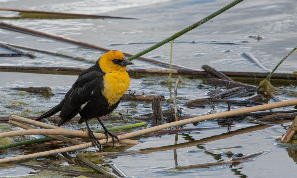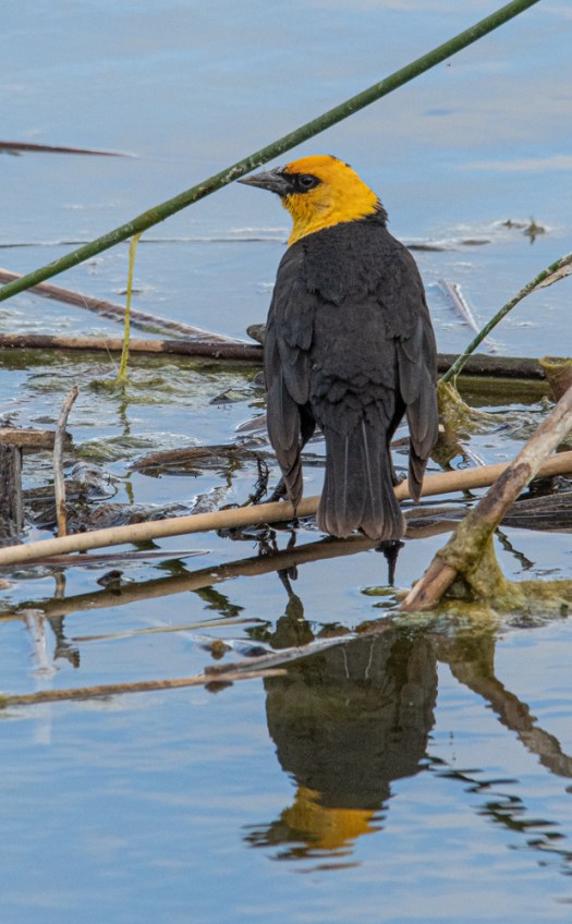 The yellow-headed blackbird is generally found in western wetlands among the reeds . . . which is exactly where we found this bird. This was a first sighting for me even though the area map for the birds show that they can be found where I live. We saw these when I was out photographing birds with the photography meet up group at Klamath Basin.