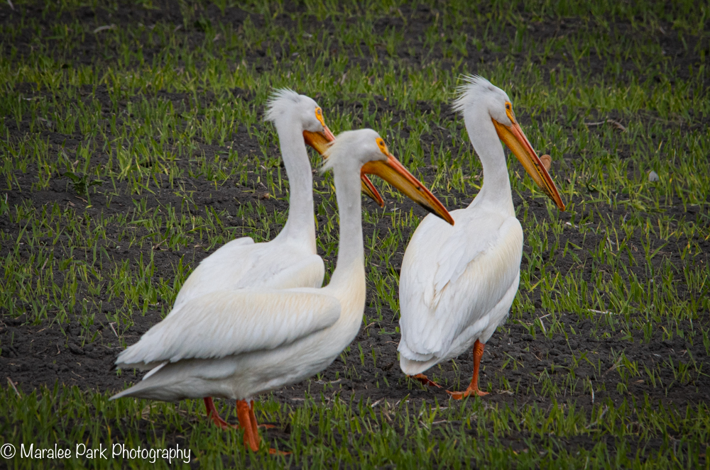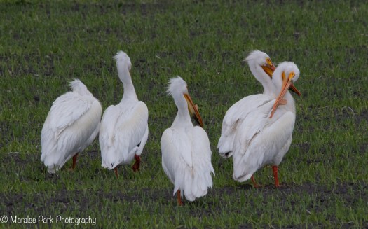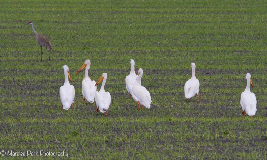 We found these pelicans . . . and one sandhill crane . . . sitting in a field.