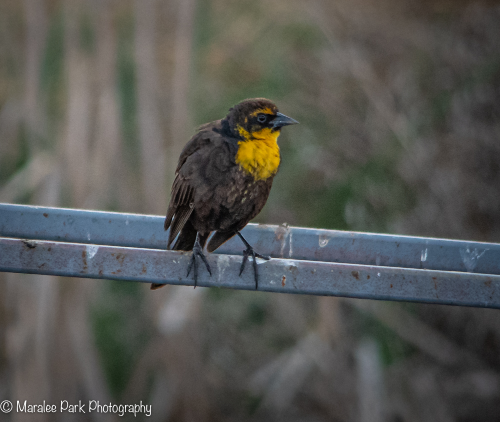 This is a female yellow-headed blackbird. While the male has a very striking yellow head (see my post from May 31st here), the female doesn’t have as much yellow in its head.