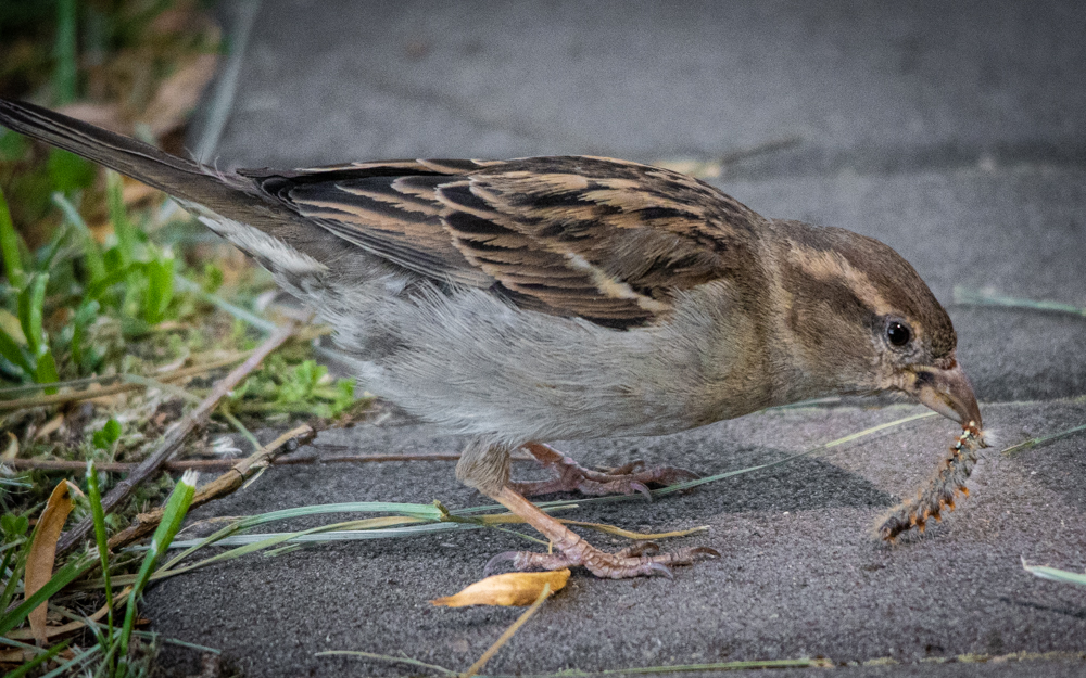 This little sparrow came out of the bushes with a nice, juicy caterpillar. These photos are quite grainy as it was in the shadow of some very large trees and I had to increase my ISO to get the shots.