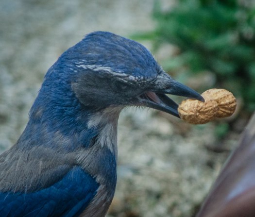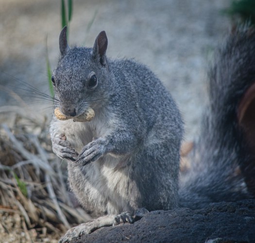 I put some nuts out for this squirrel who had been eating all of the food in my bird feeder. I thought it would distract him and let the birds have the feeder. It worked until a scrub jay decided it wanted the nuts. Both of them would take a nut and the hide it somewhere nearby.
