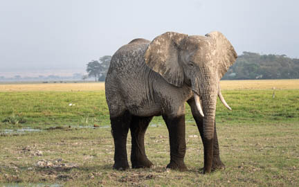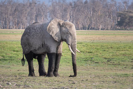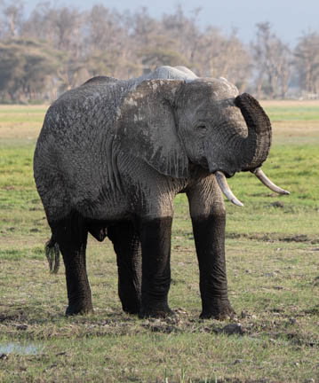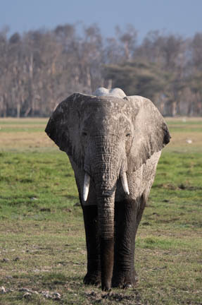 Here are more of the elephants from Amboseli. They would walk to the marshes every day to wallow in the mud and eat the greens. At the end of the day they would walk back “home.” You can see the demarcation of the mud on them at the end of the day.