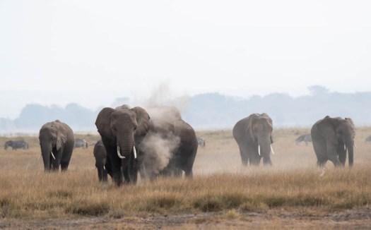 Elephants use dirt as sunscreen. … When coming out of a bath in a river, elephants will often throw mud on themselves as a layer of protection. And when calves are sleeping, adults will often stand over them to cast shade and protect them from the sun. Every day we would see the elephants kick the ground to loosen the dirt and then use their trunks to throw dirt over themselves.