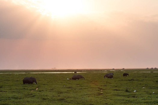 Posted on September 25, 2019September 24, 2019 by Tuxedo Sophisticated CatElephants at Sunset At the end of our second day in Amboseli, we watched a herd of elephants in the marsh as the sun started to set. As the sun went down, they started leaving the marsh to head back “home.” Rate this:Share this: Click to share on X (Opens in new window) X Click to share on Facebook (Opens in new window) Facebook Click to email a link to a friend (Opens in new window) Email Click to share on LinkedIn (Opens in new window) LinkedIn Like Loading... Related