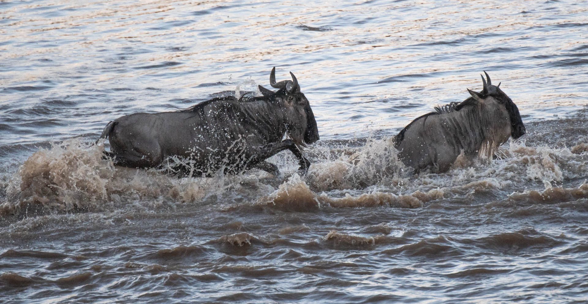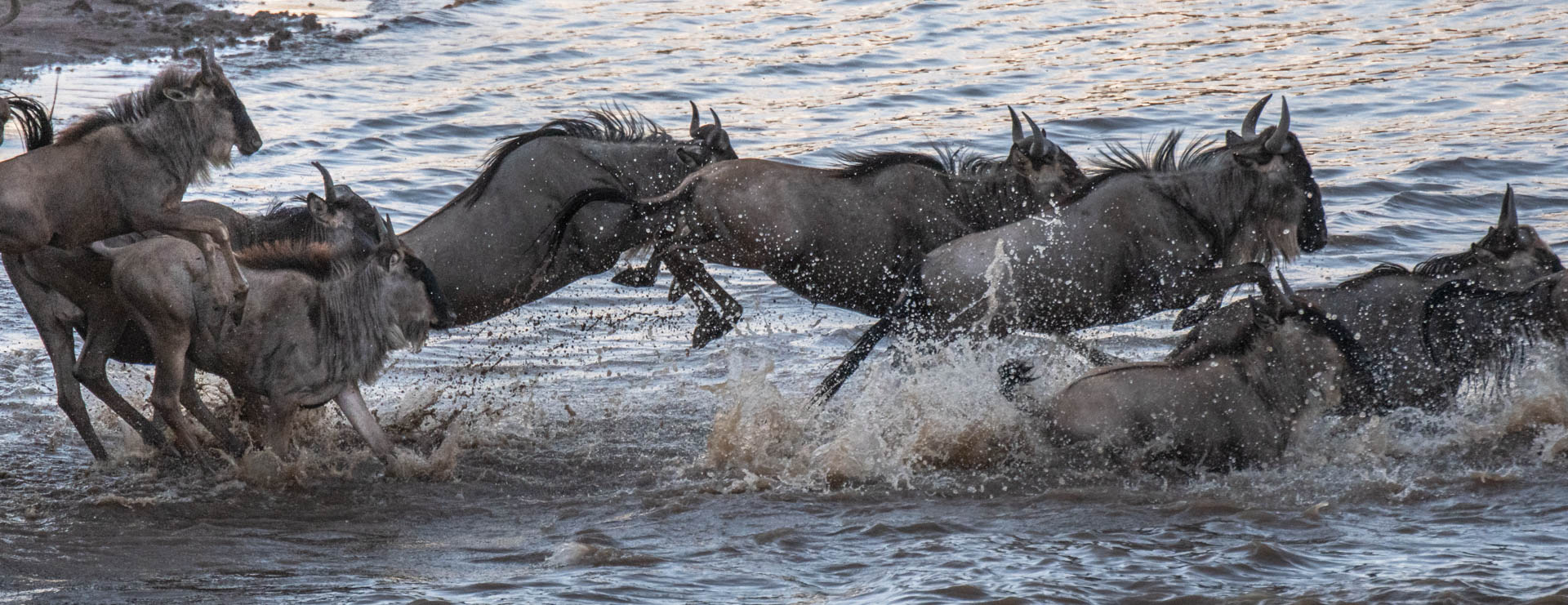 The second wildebeest crossing took place early in the morning on our second day. It was at an area called the Peninsula which was only a few minutes from our camp.