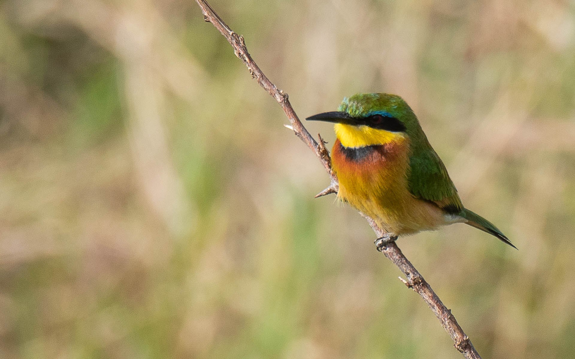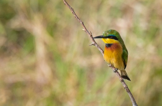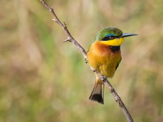 Bee-eaters capture many different flying insects – not only bees. They are especially attracted insects drawn to flowering plants. The Cinnamon-chested Bee-eater is found in highland areas of western Kenya in sunny open areas with trees and shrubs.. They are extremely fast and will most likely return to the same branch after leaving to catch a bee or other insect.