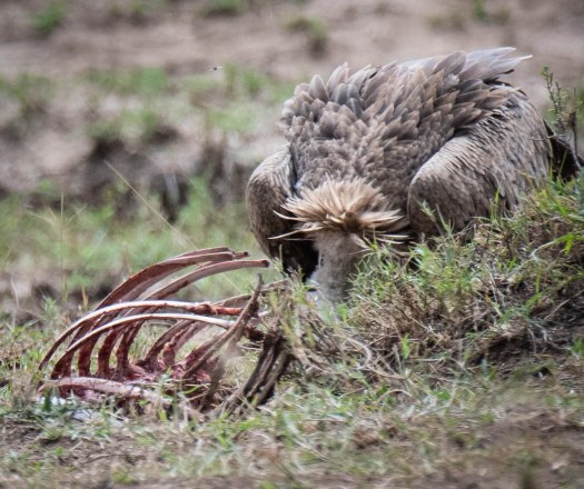 Vultures are a common sight in Kenya. They play a very important role in cleaning up carion. Once the predators are finished eating their share, the vultures and hyenas move in to clean up the rest. When all is said and done, there is hardly a bone left as evidence that an animal had been there.
