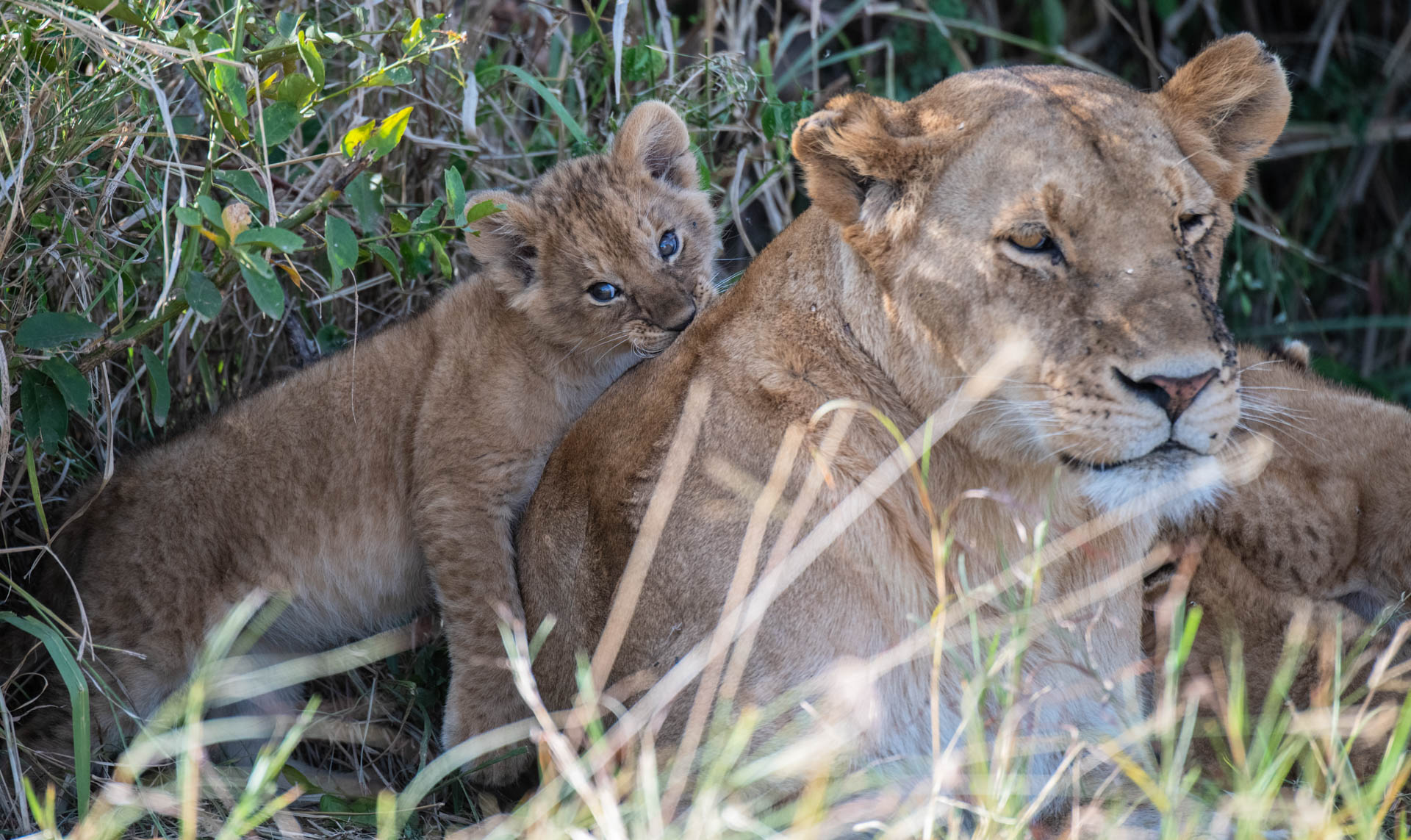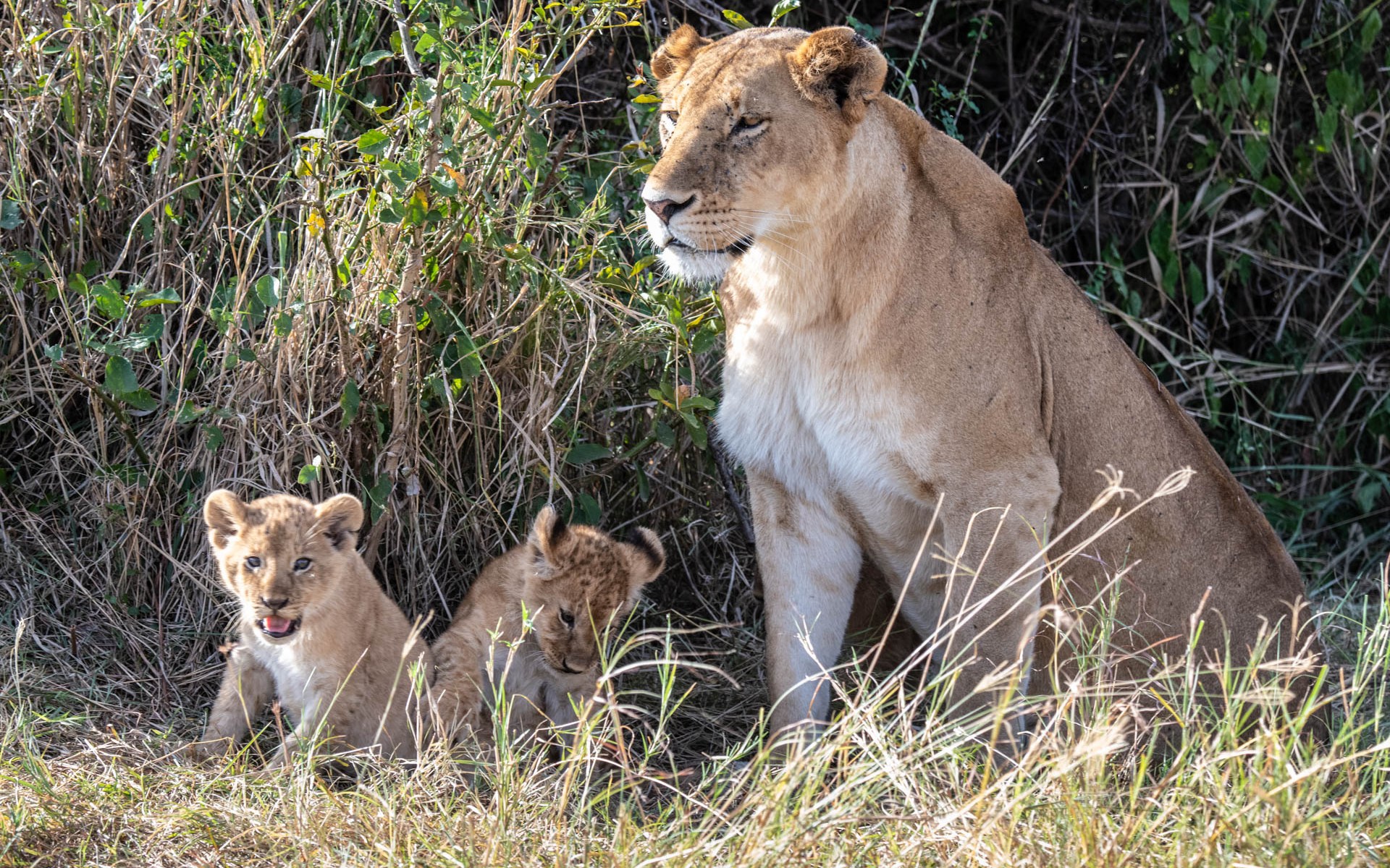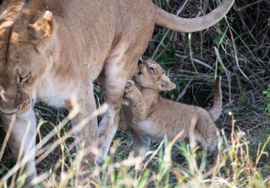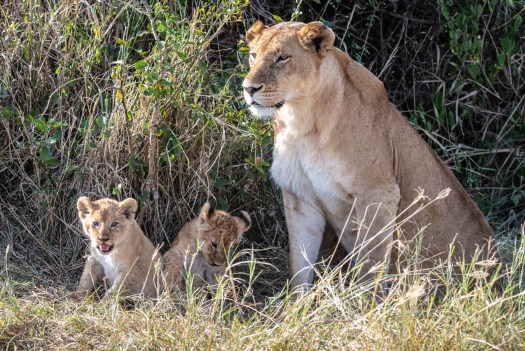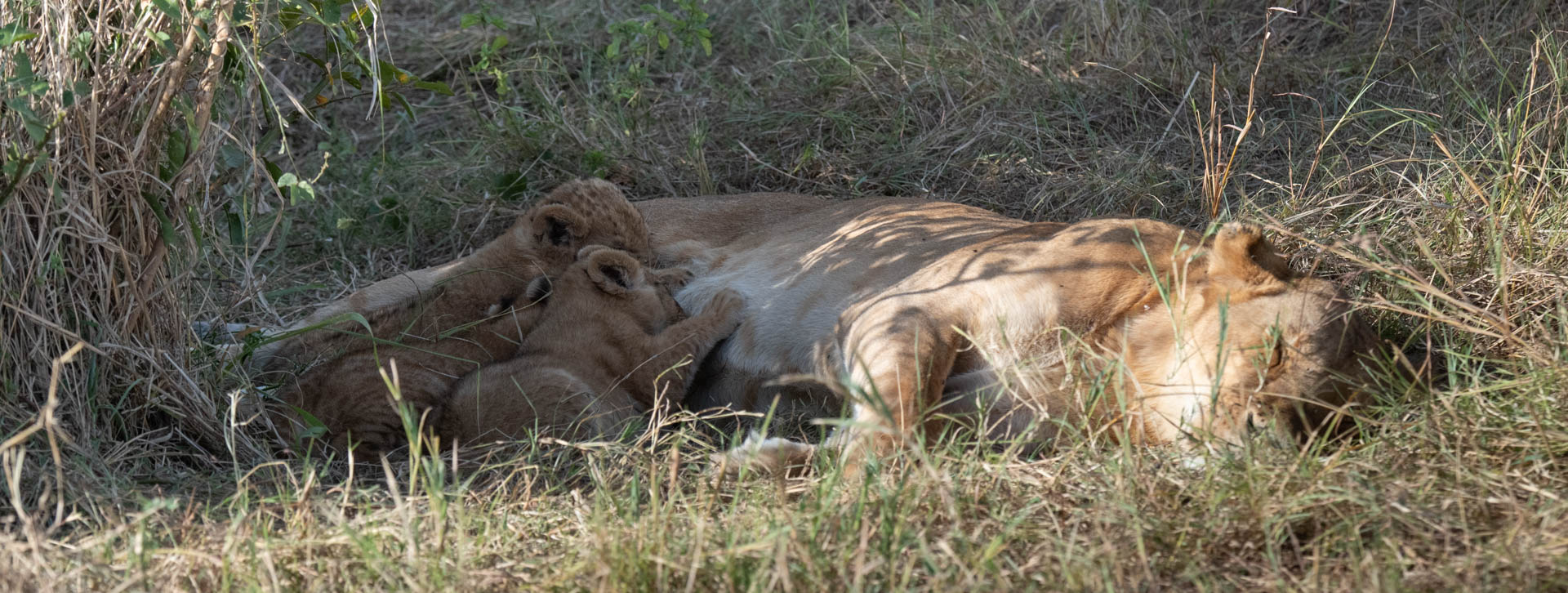One afternoon we went near the Kenya/Tanzania border hoping to find a pair of cheetah brothers who had been known to travel in that area. No luck finding them, but we did find a lioness and her three small cubs. They were the cutest little things and they were all over mom. We spent quite a bit of time watching them.