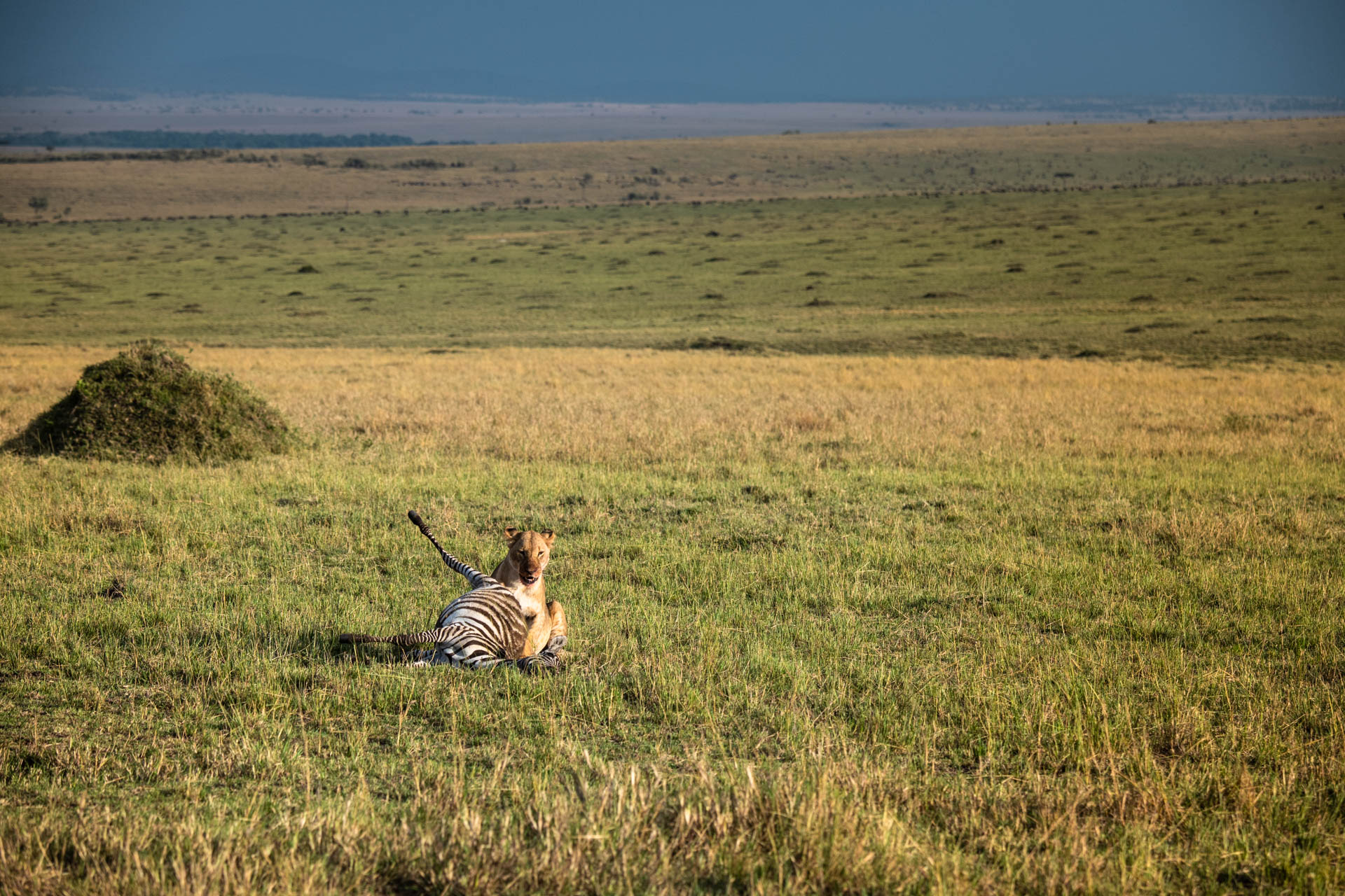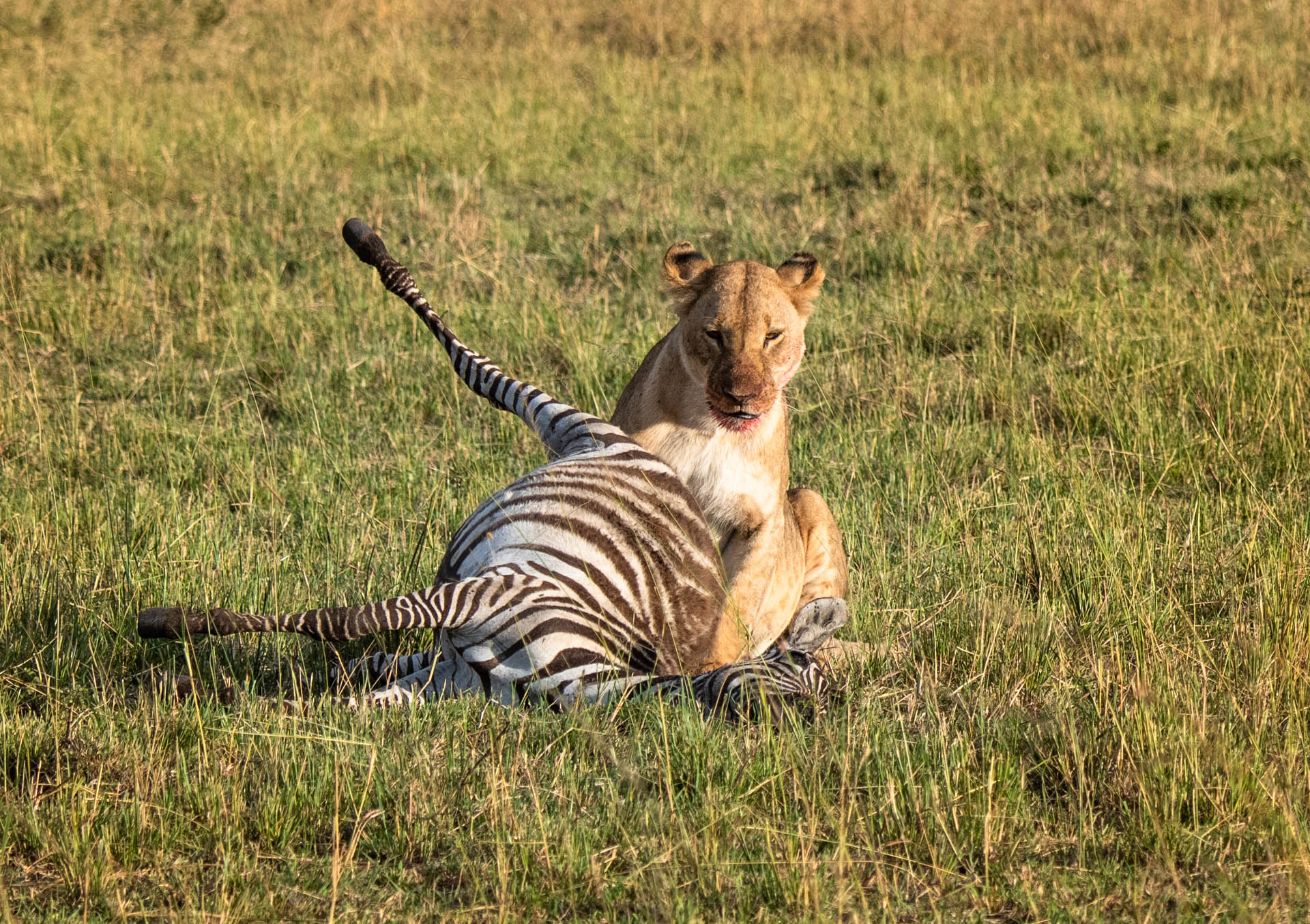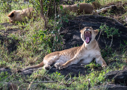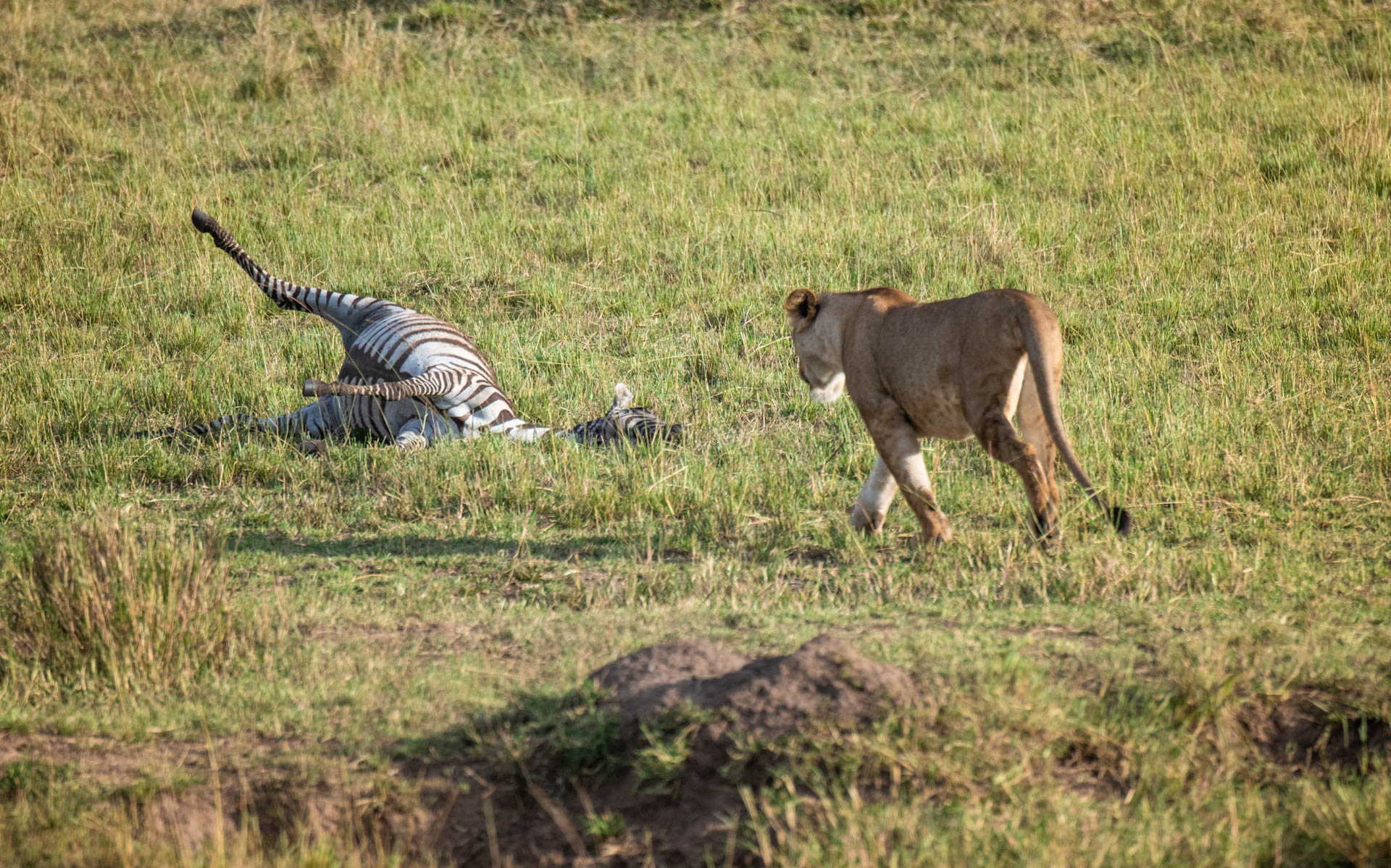 This lioness killed a zebra one morning and then went off to sleep a short distance away. I didn’t witness the killing myself, but others in our group did. This was in the same area where we saw the leopard sleeping in the tree. We returned later in the afternoon and waited to see if the lioness would return to her kill. Once she started yawning, we figured it wouldn’t be long before she went over to the zebra. And she did.